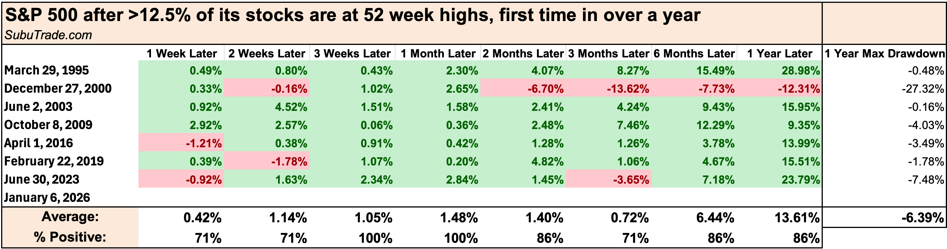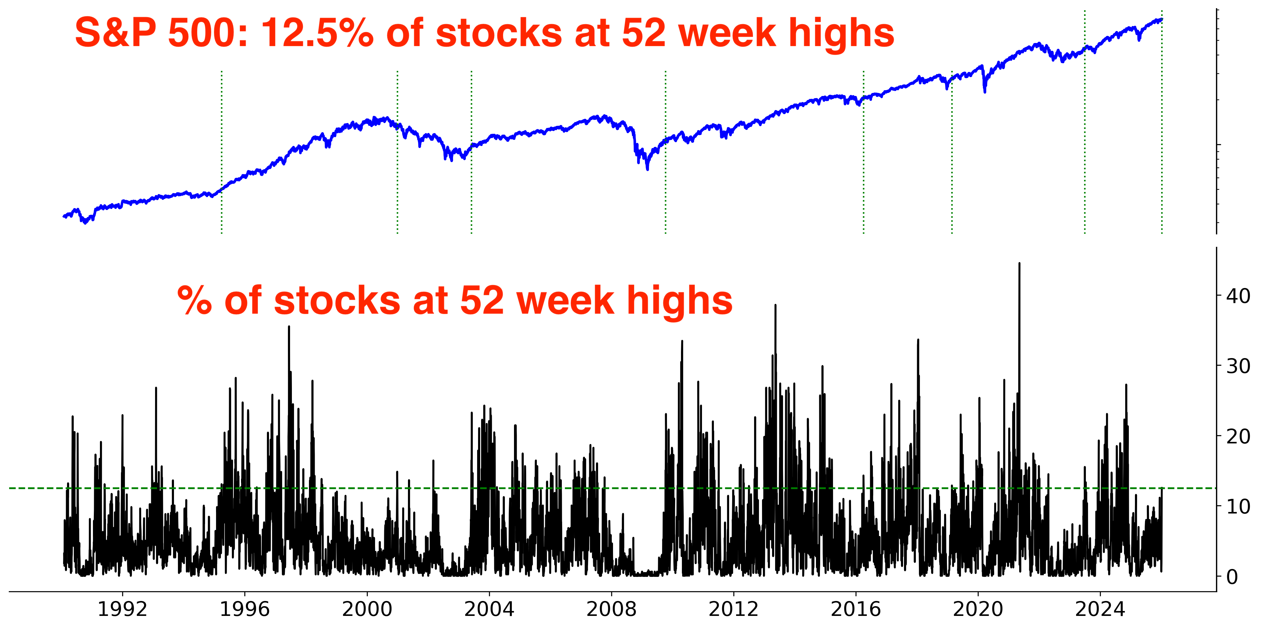 The % of S&P 500 stocks at 52 week highs also jumped to the highest level in over a year.
