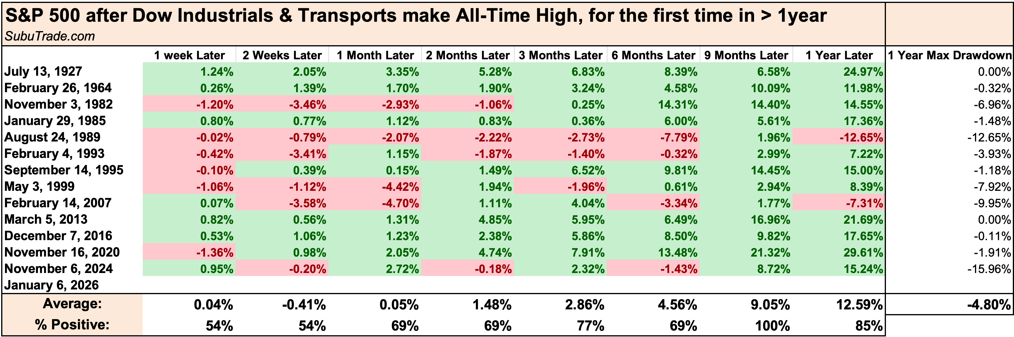 These breadth recoveries tend to occur 6-12 months after a bear market or market crash, such as the one we saw in April last year under Trump’s tariffs. The market’s short and intermediate term path may become more volatile, but more gains are usually ahead for both the Dow Jones Industrial Average and the S&P 500: