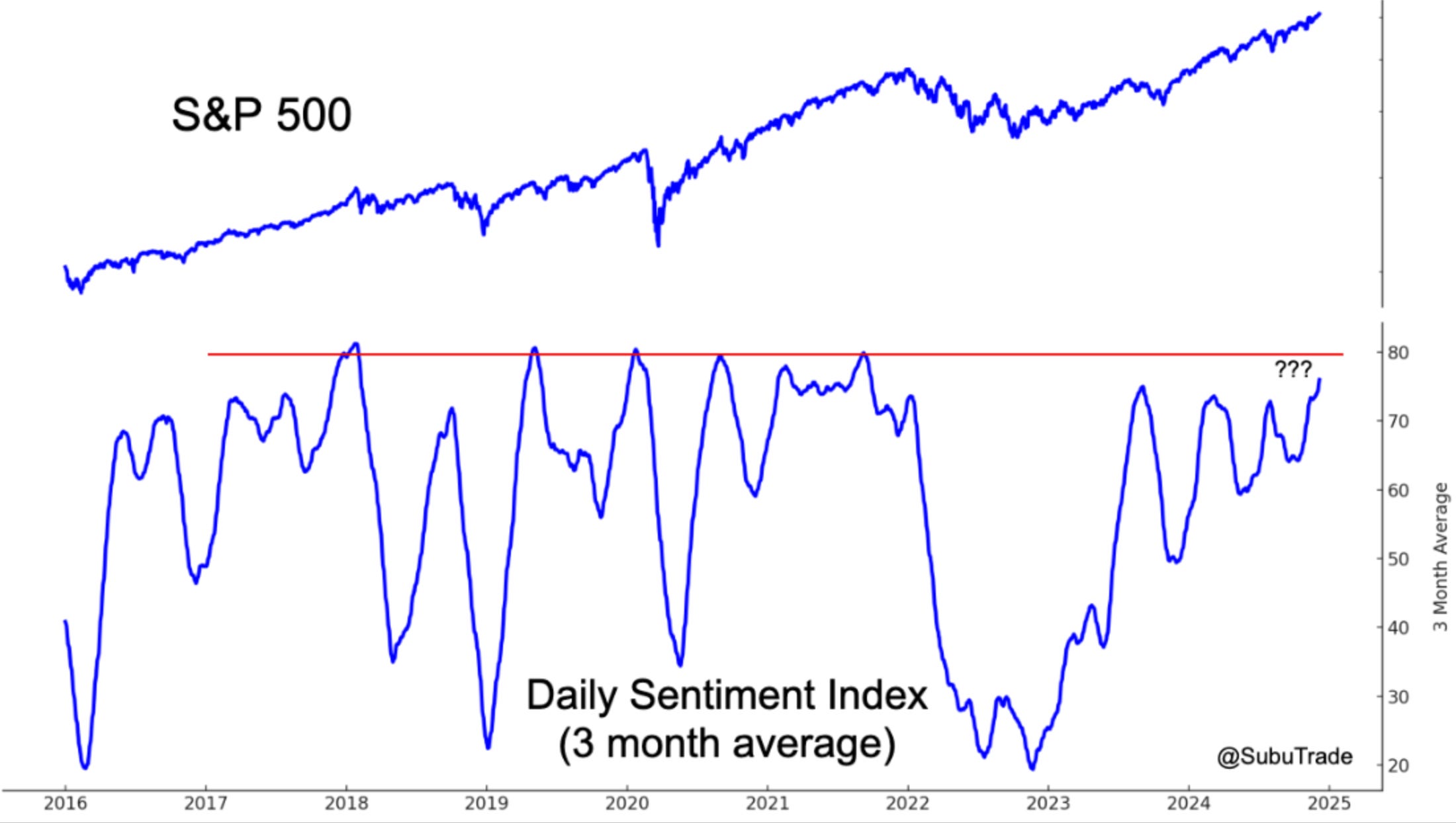 With that being said, I have no opinion on Bitcoin here. I am neither long nor short. But I will caution that Bitcoin’s sentiment is extremely high right now, and historically, this at least led to a correction, if not more.