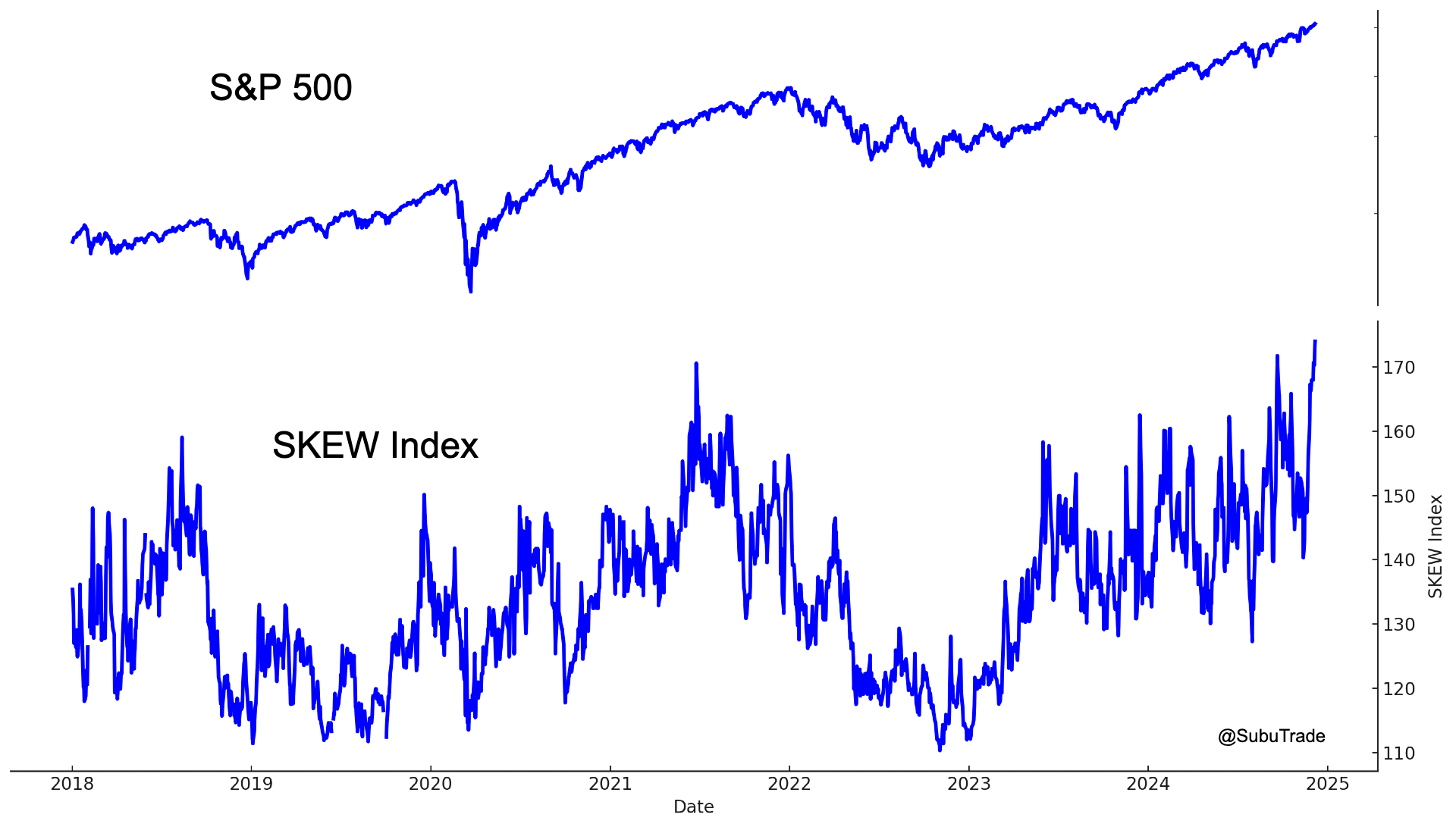 The SKEW Index—indicative of perceived market crash risk—remains elevated. This suggests some traders are actively hedging against a potential market downturn, wary of a repeat of the 2022 collapse.