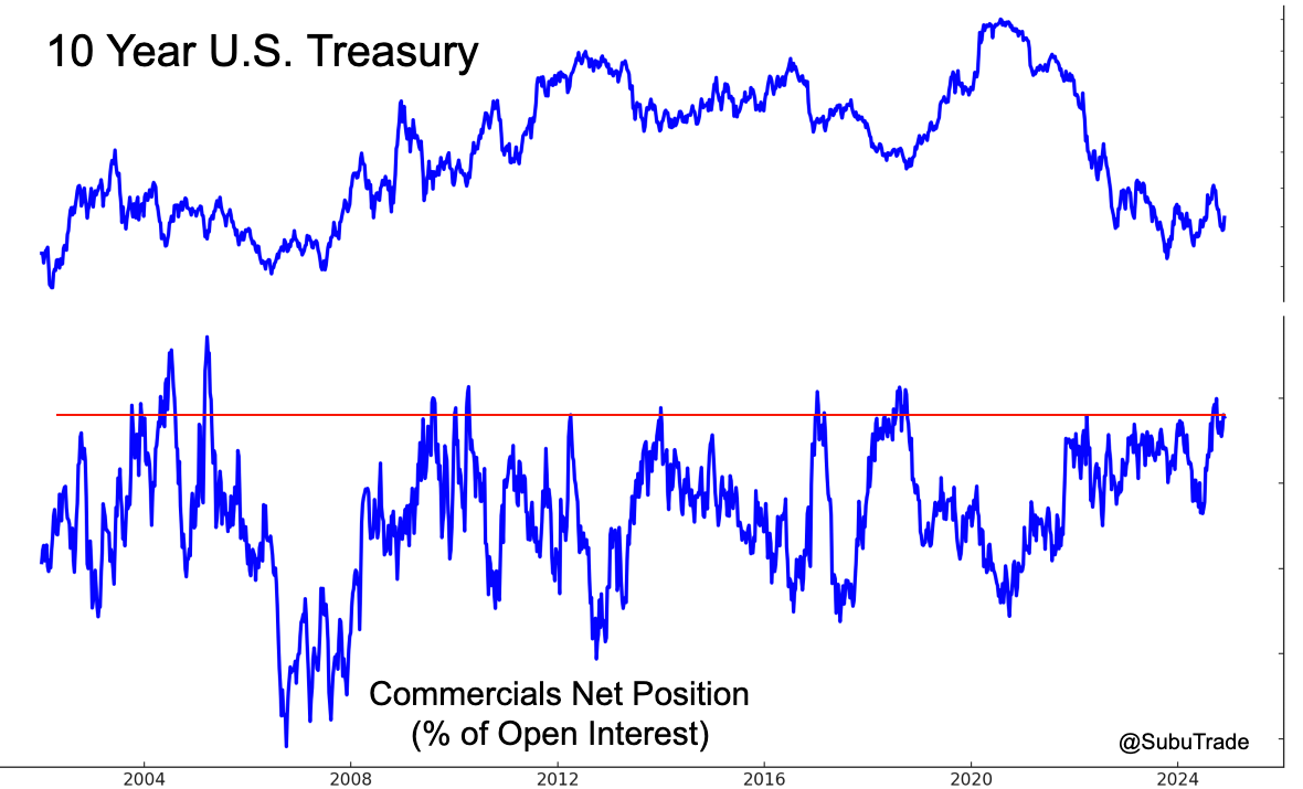 While commercial hedgers remain very bullish towards Treasuries, I do not see a catalyst that will trigger a large and sustained rally in Treasuries. Inflation remains elevated, which depresses bond prices.