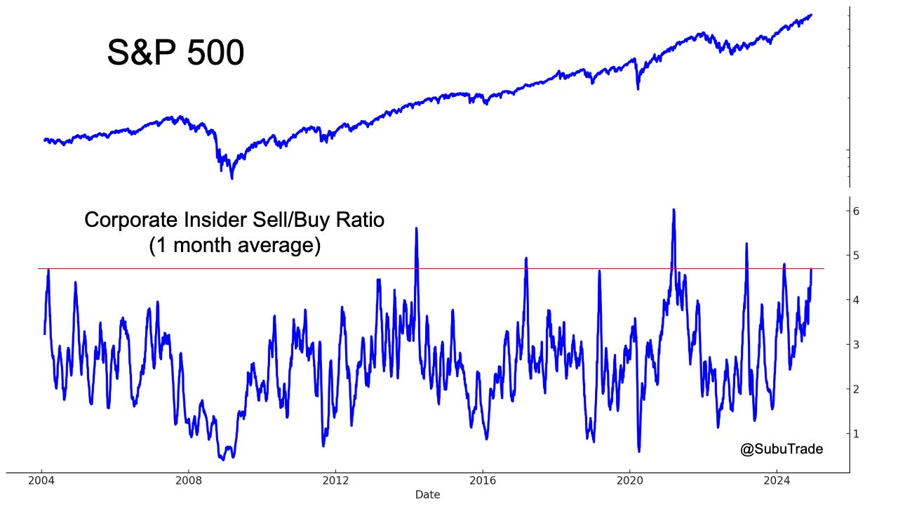 As I posted on X, Corporate Insiders continue to sell stocks at an extremely fast pace. They tend to sell a too early though, before the stock market tops…