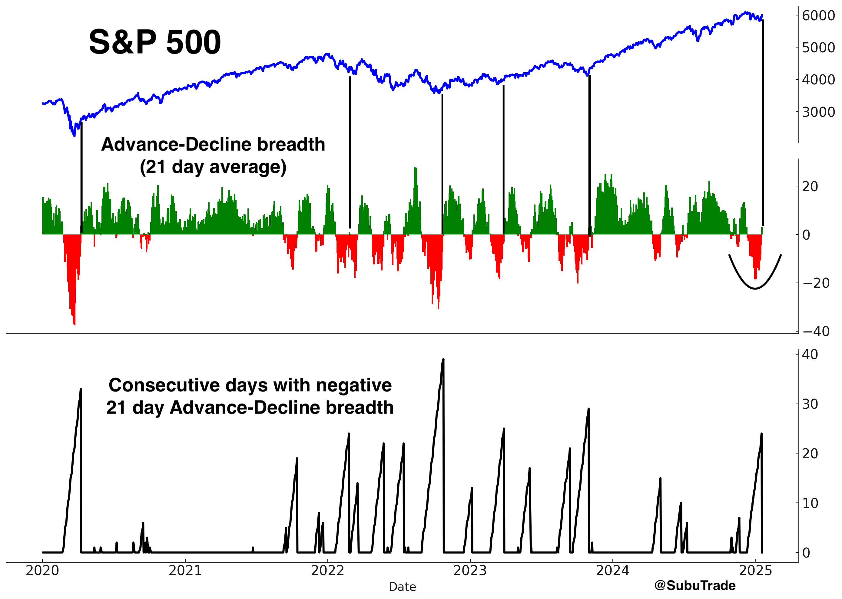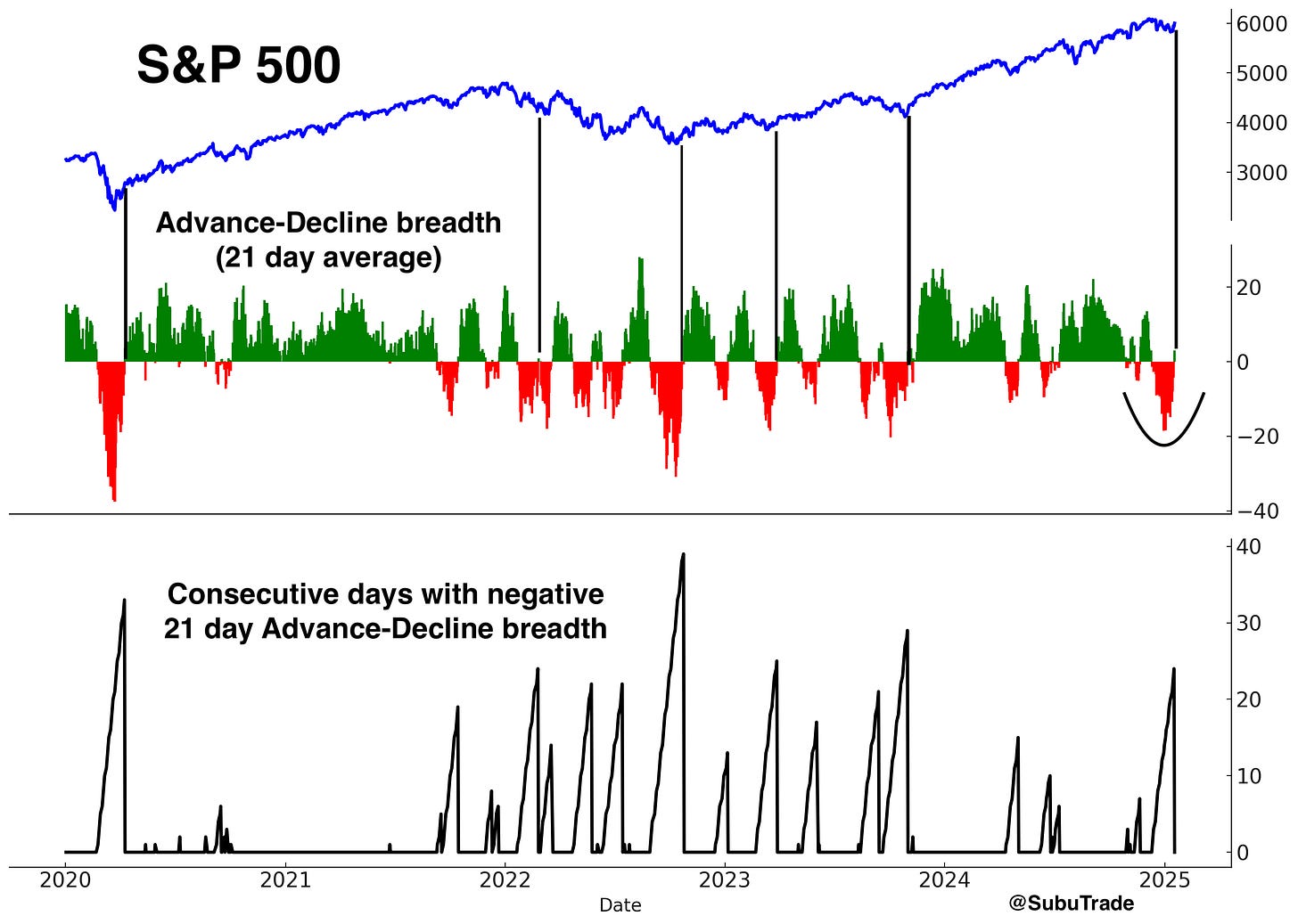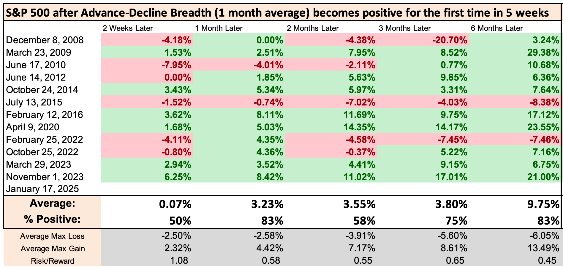 As I shared on Twitter/X, breadth is improving. The S&P 500’s Advance-Decline 21 day average became positive for the first time in 5 weeks: