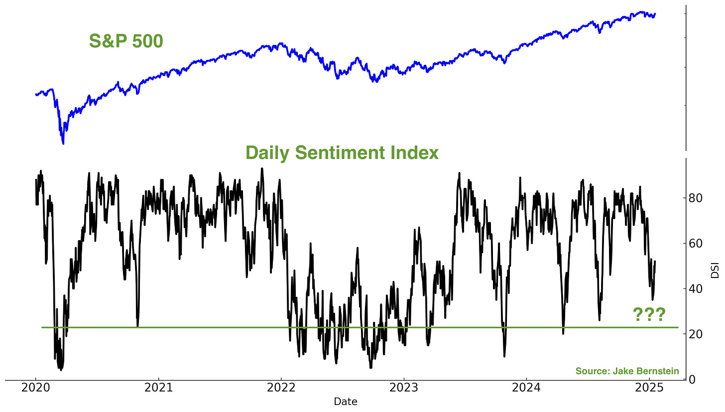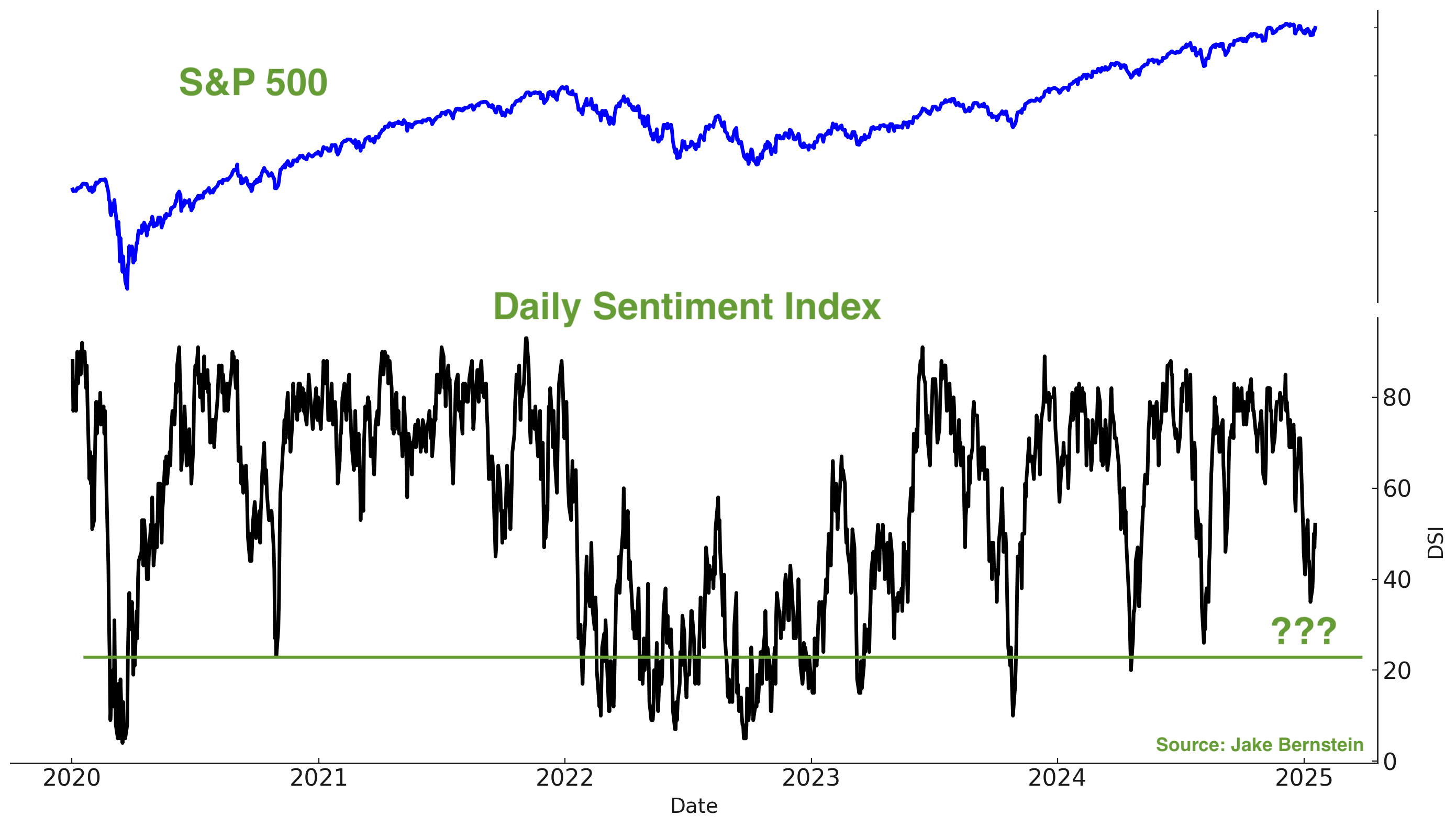 The recent pullback somewhat brought down the S&P 500’s Daily Sentiment Index: