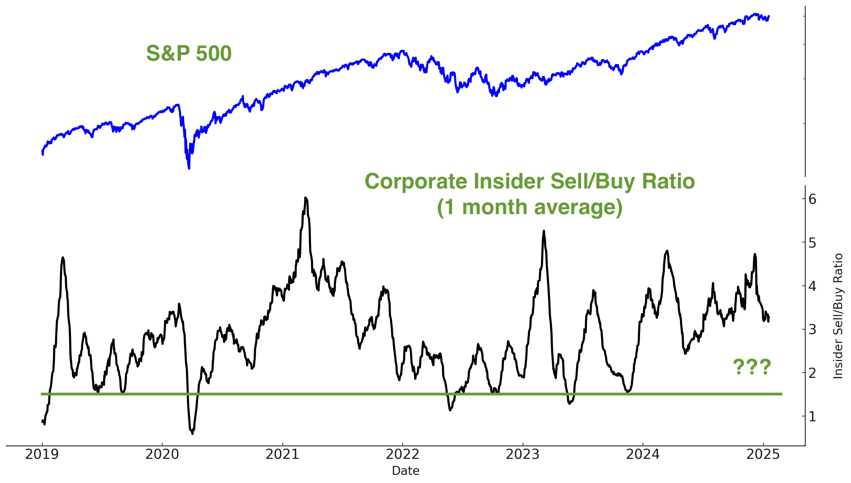 Corporate insiders reduced their selling during the recent stock market pullback, but not enough to push the Insider Sell/Buy Ratio down to a level that historically, was extremely bullish for stocks.