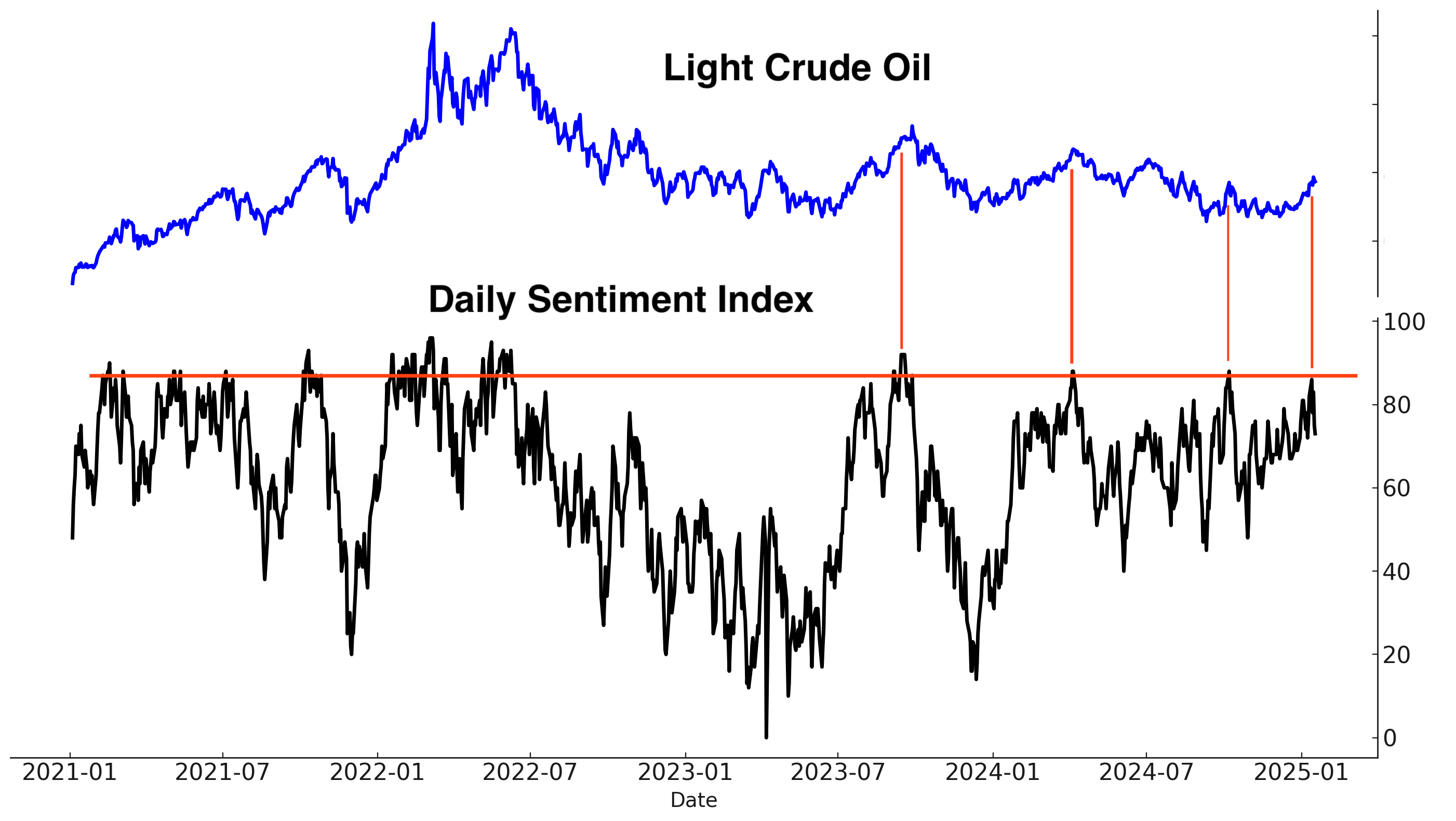 Crude oil’s Daily Sentiment Index has also gone up. The energy sector may continue to rally, but risk:reward does not favor bulls here:
