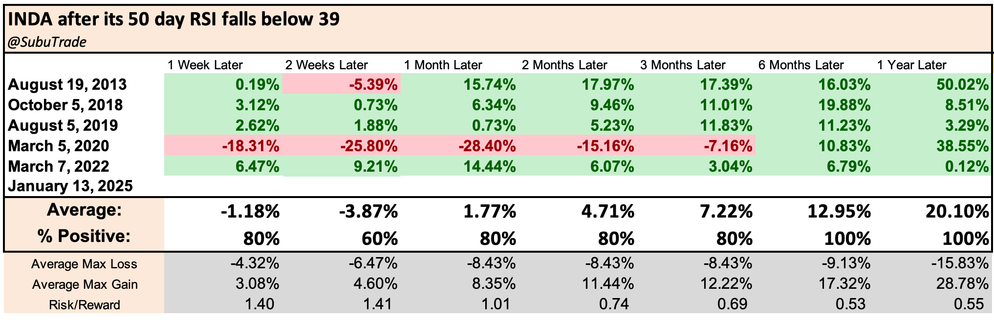 I went long INDA on Friday. This is a mean-reversion play. I’m looking for a multi-week/month bounce.