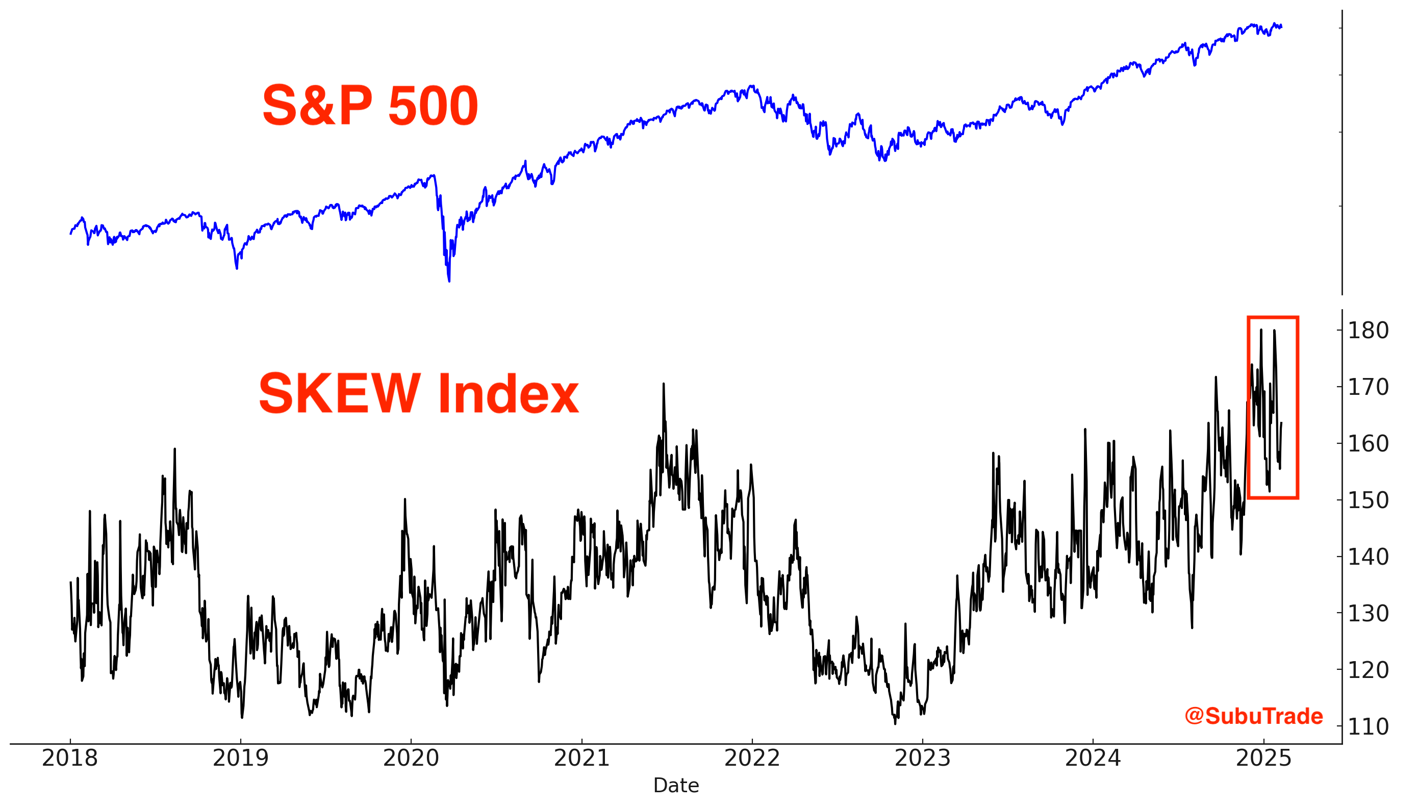 The SKEW Index, which essentially measures the probability of a stock market crash, is still extremely elevated: