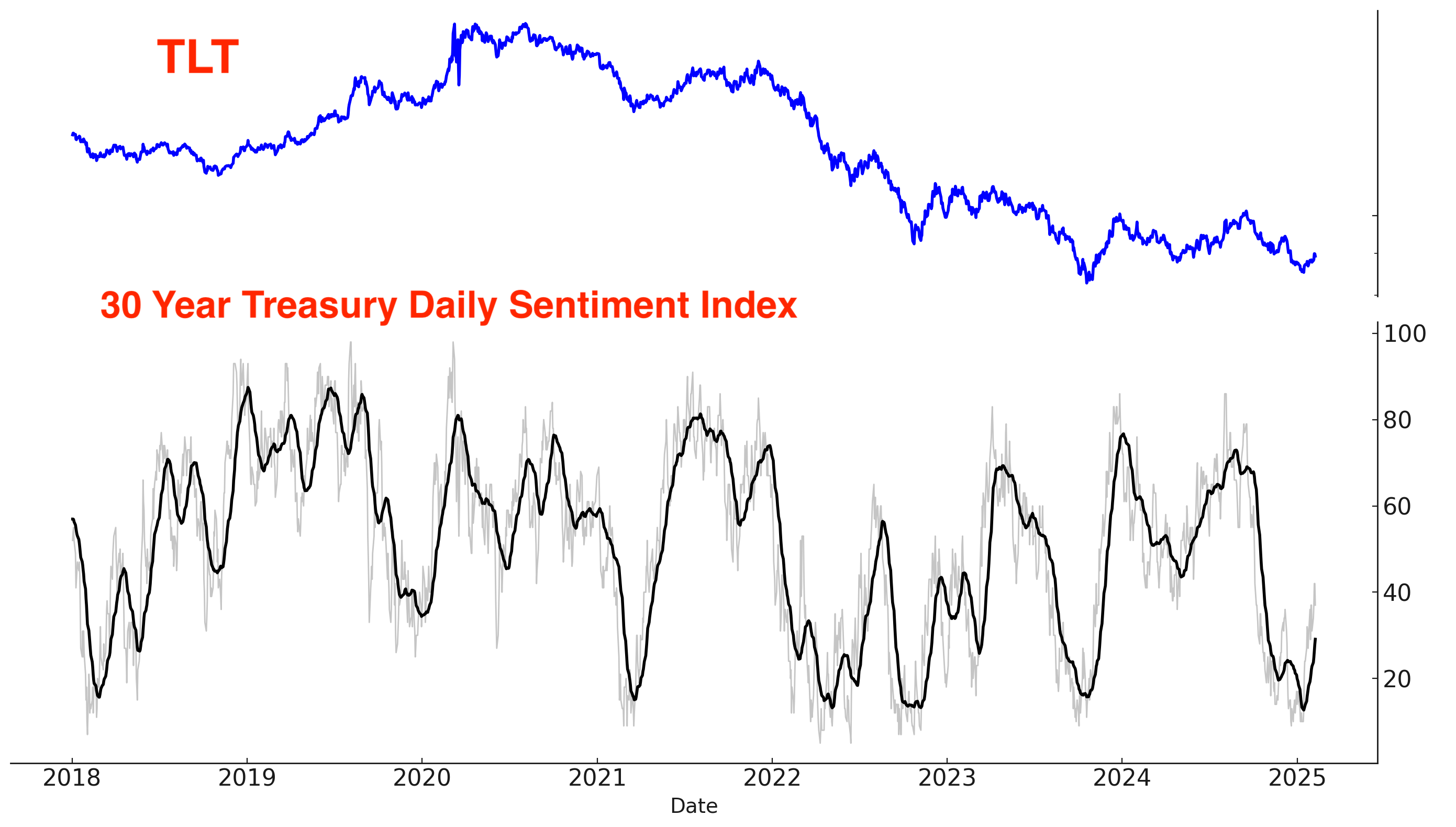 Here’s the 30 Year Treasury Bond’s Daily Sentiment Index. Room to push higher before this rally ends: