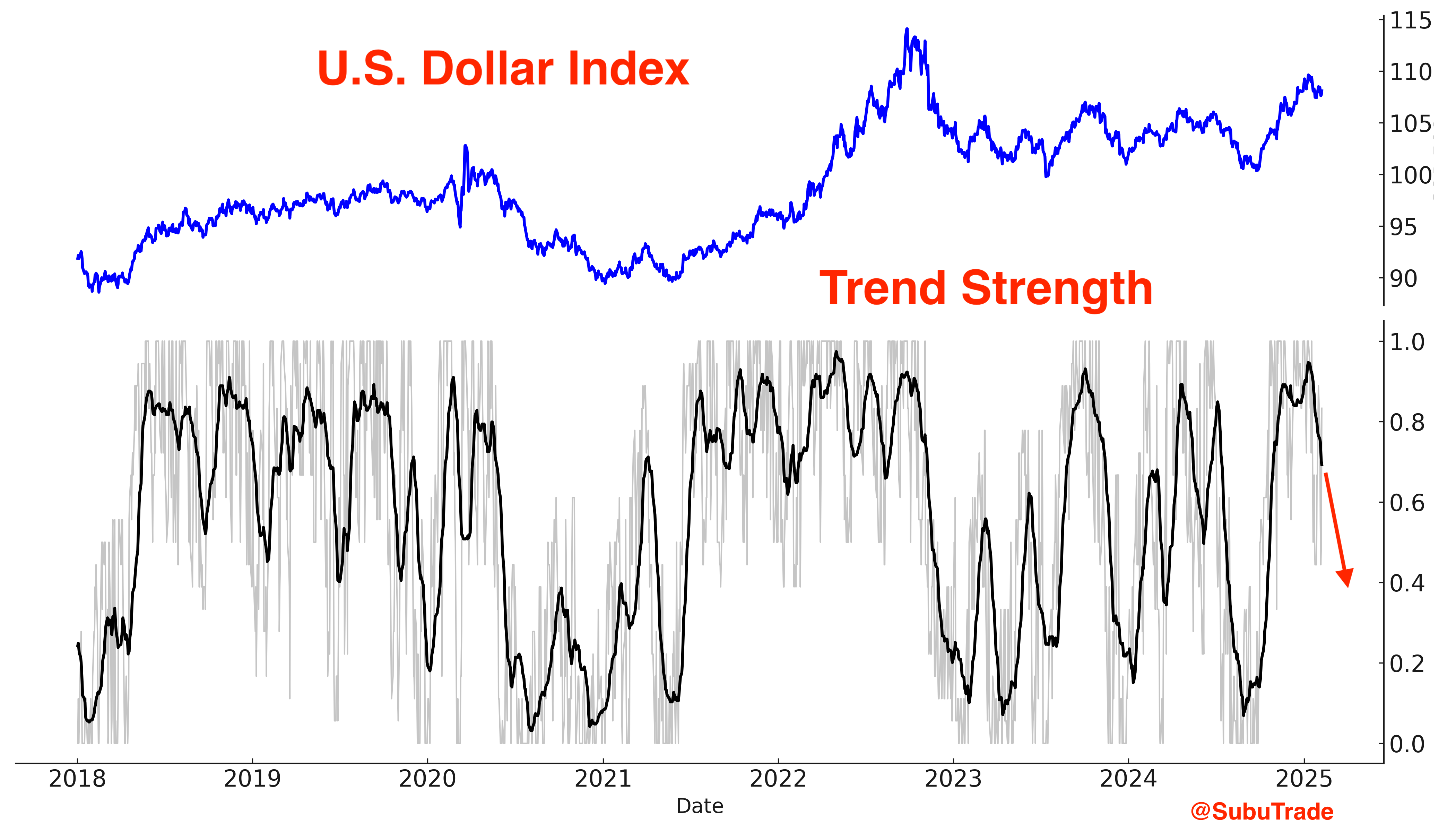 Treasury Bonds: Rallying, though their performance lags behind non-U.S. equities and precious metals. Meanwhile, the U.S. Dollar is falling.