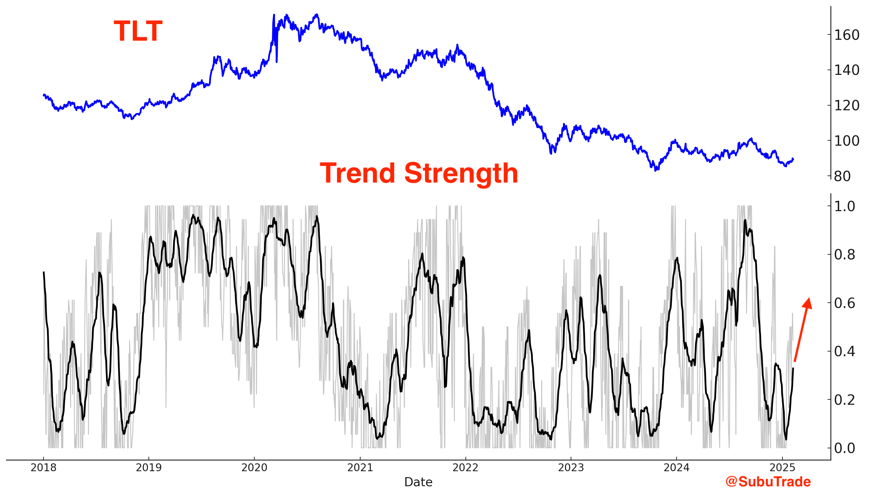 TLT’s trend is reversing upwards: