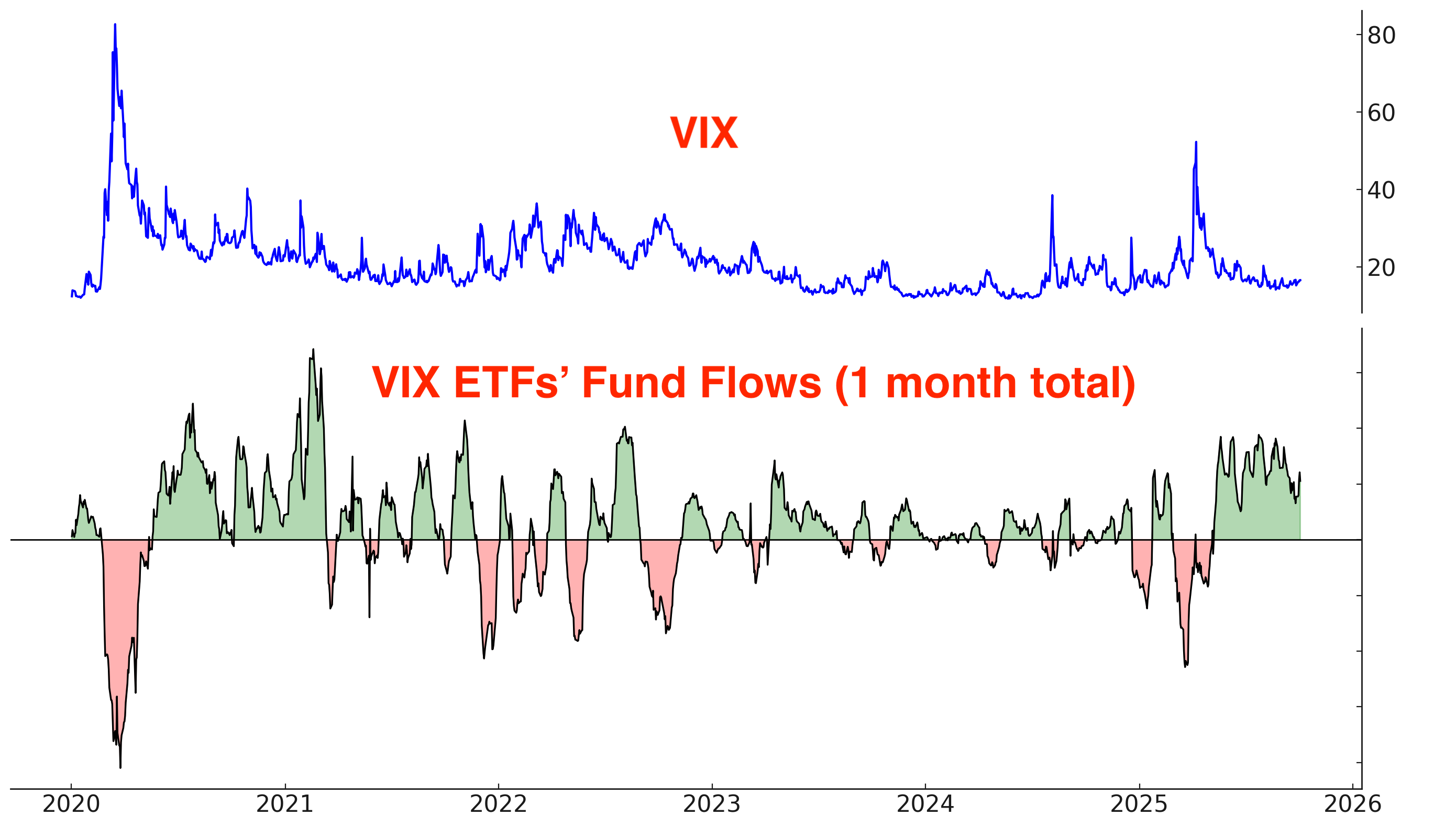 VIX ETFs have seen non-stop inflows over the past few months. These traders are betting on stocks to pullback and VIX to jump: