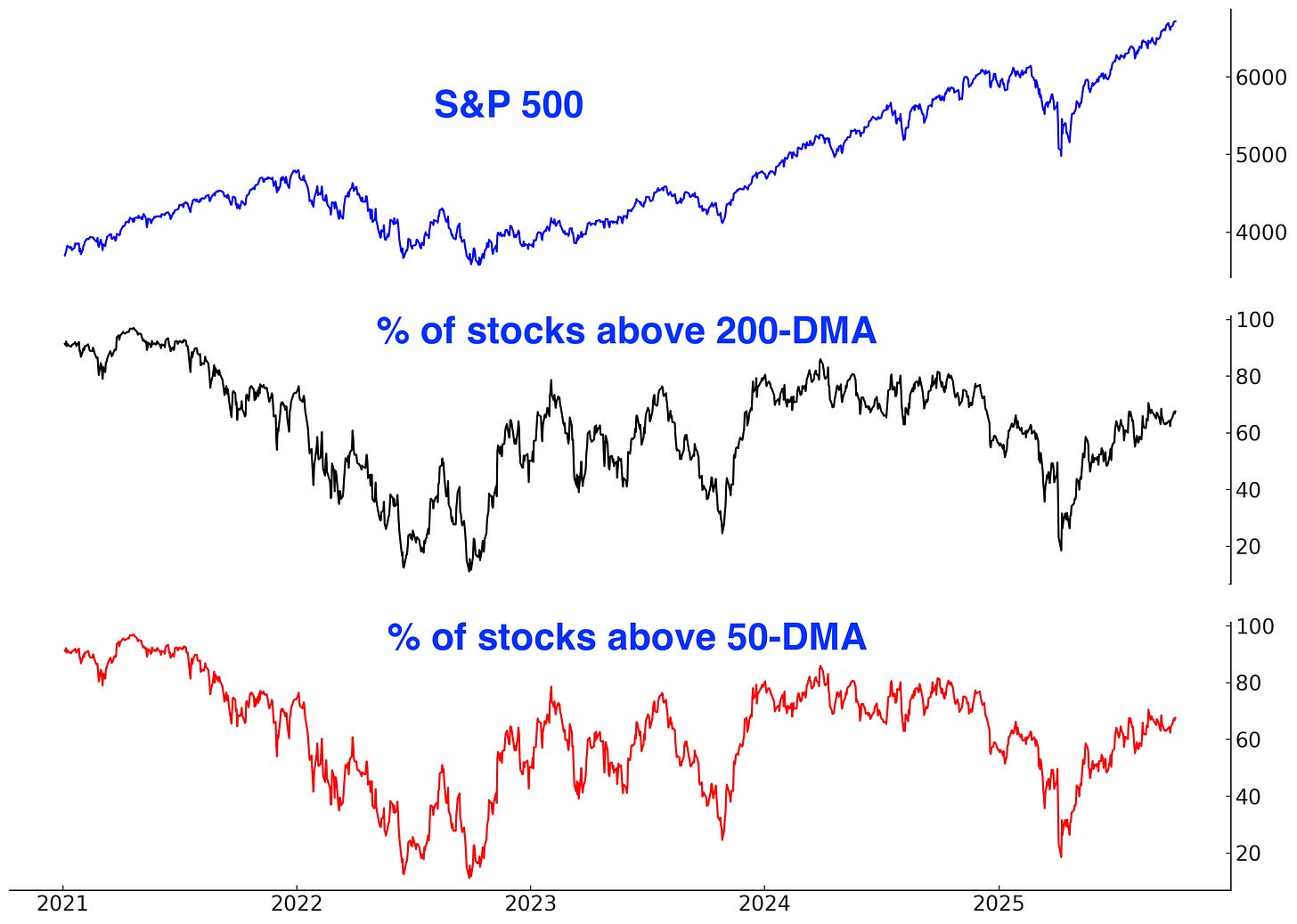 Here are the % of S&P 500 stocks above their 200 and 50 day moving averages: nothing abnormal.