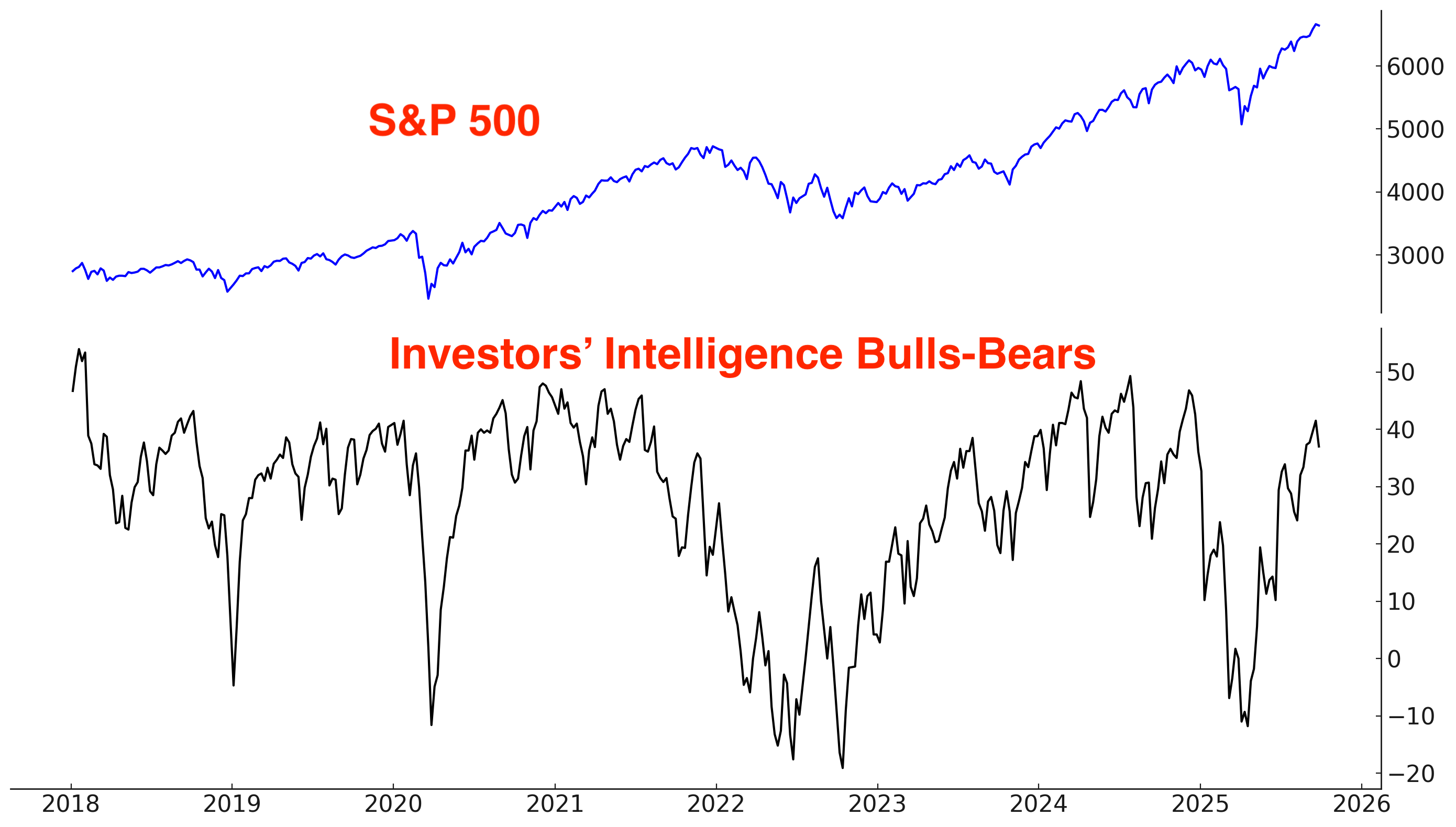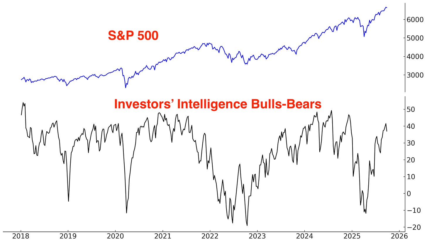 According to the Investors Intelligence report, newsletter writers lean bullish: