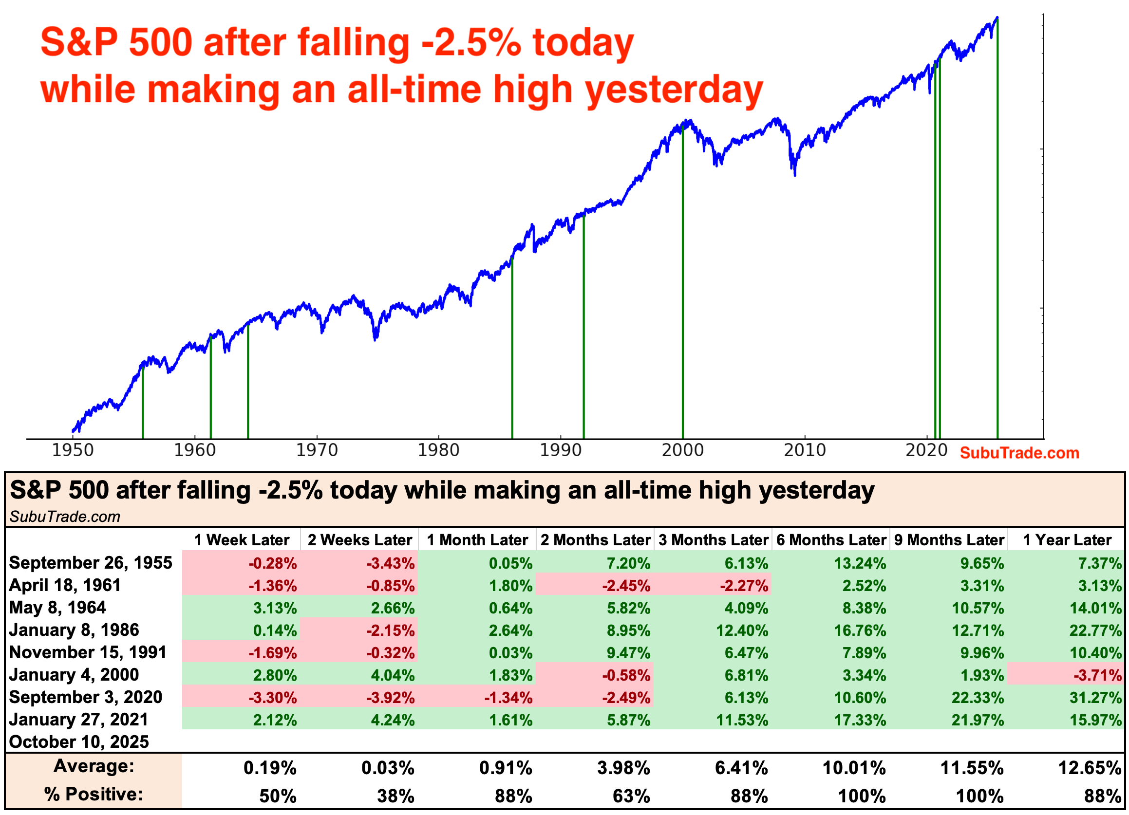 As is often the case, the data calls for less extreme scenarios. It is not common for the S&P 500 to make a new all-time high, then immediately meltdown the next day (as it did on Friday). These are typically news-driven events that can lead to more short term volatility, but longer term is followed by more gains.