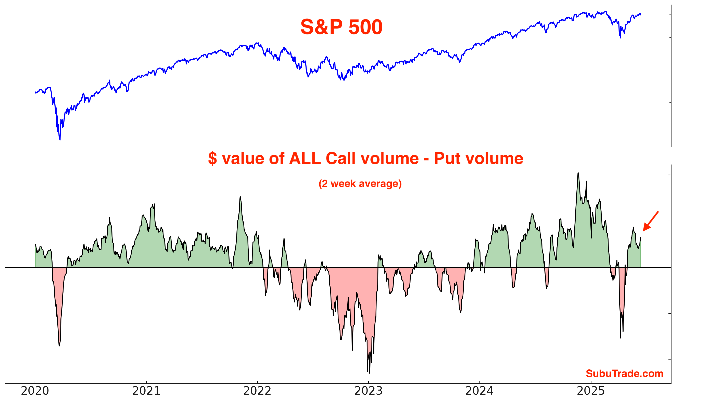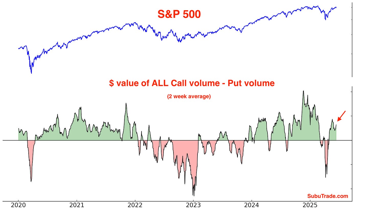 The $ value of all Call volume - the $ value of all Put volume is elevated, but not extremely high: