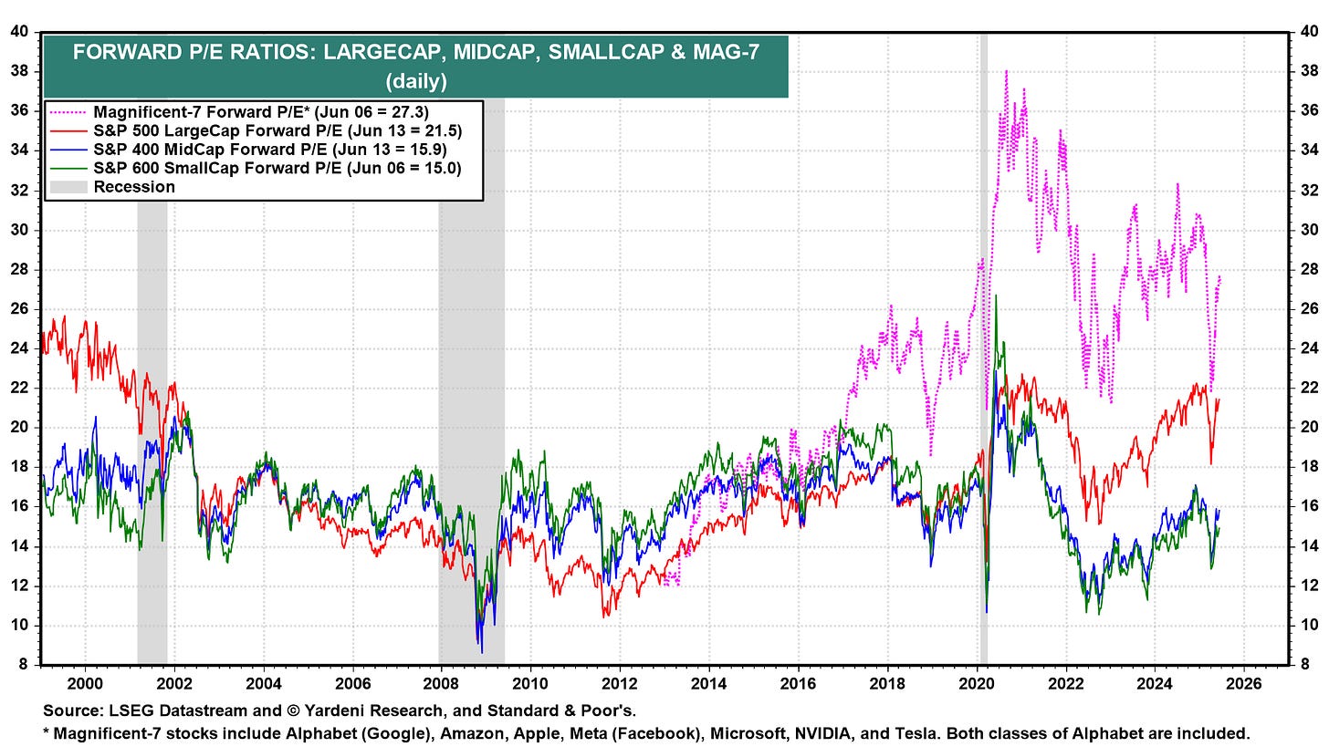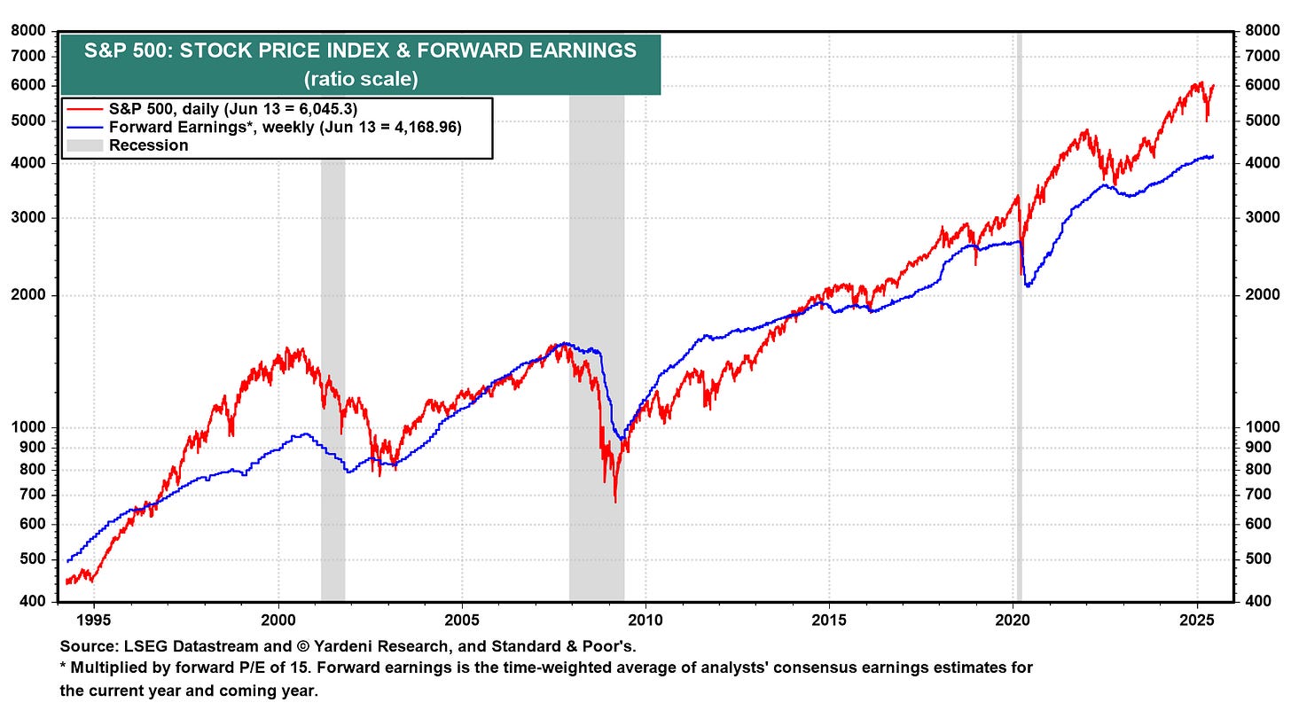 Here’s the S&P 500’s forward earnings expectations. In the long run, earnings and stock prices move in the same direction. Earnings are still growing right now.