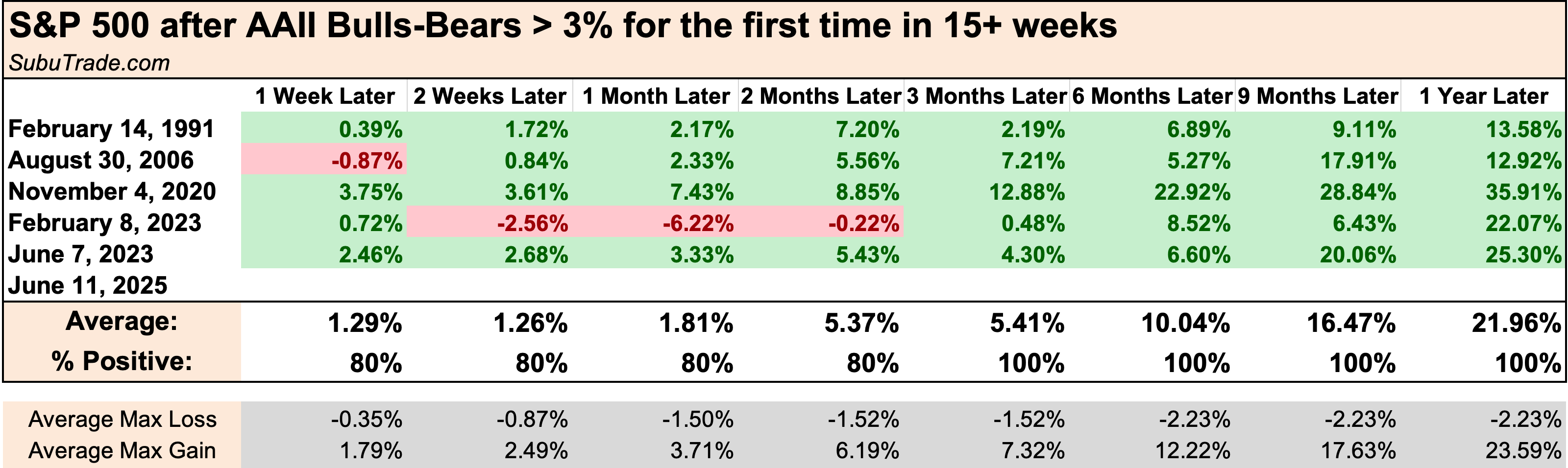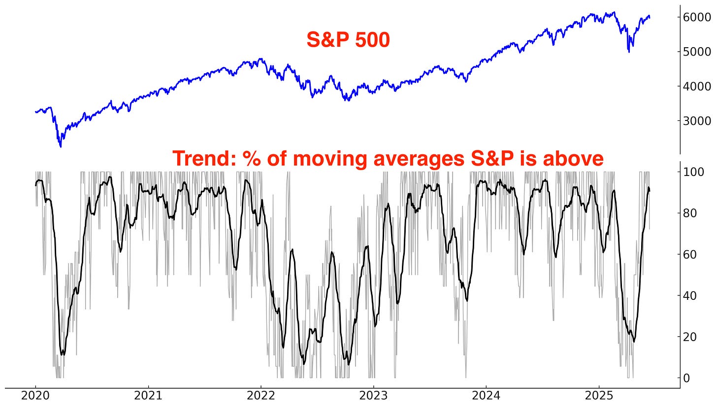 Long above vs. below the S&P 500’s 50 day moving average: