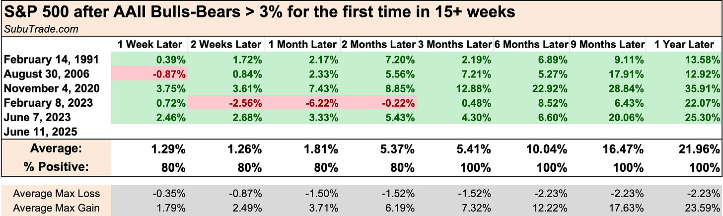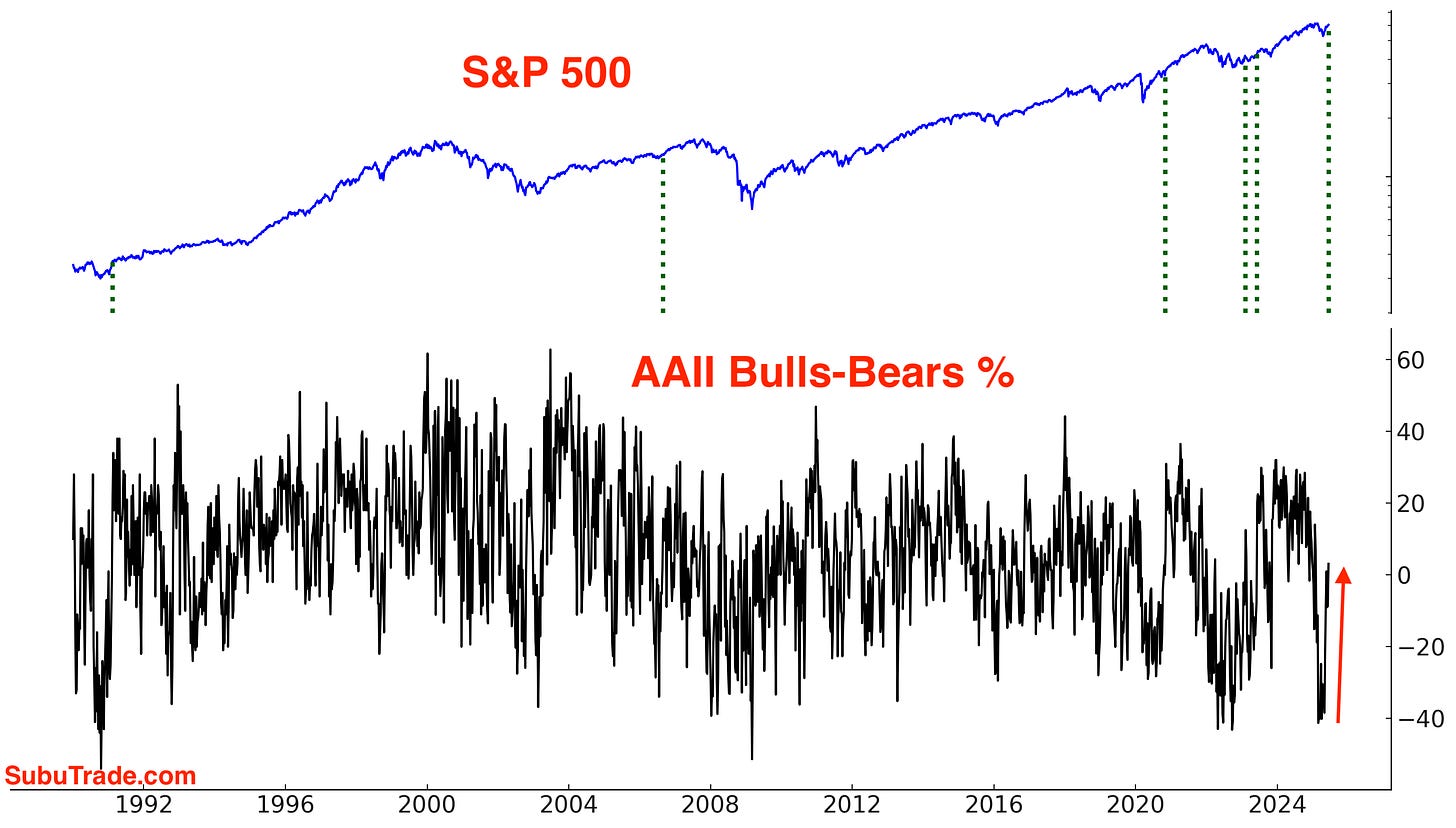 Depending on what sentiment indicators you look at, sentiment is just starting to recover. AAII Bulls-Bears is above 3% for the first time in 15 weeks. Despite stocks being close to all-time highs, there are hardly more bulls than bears!