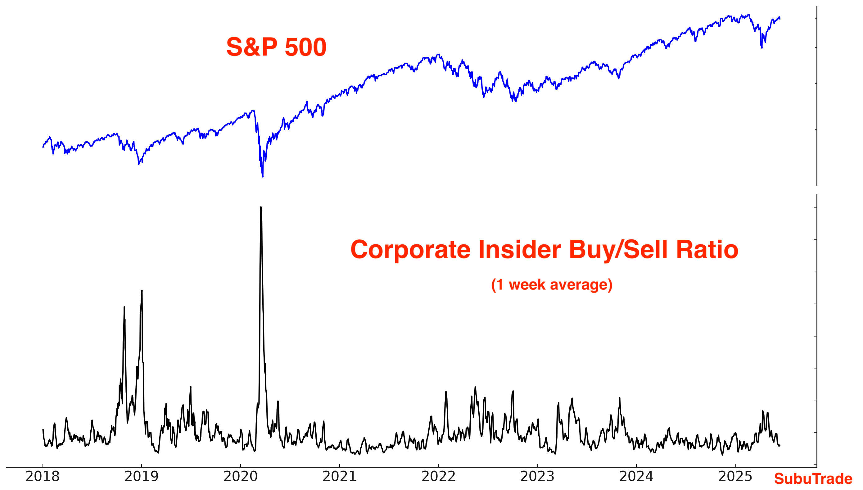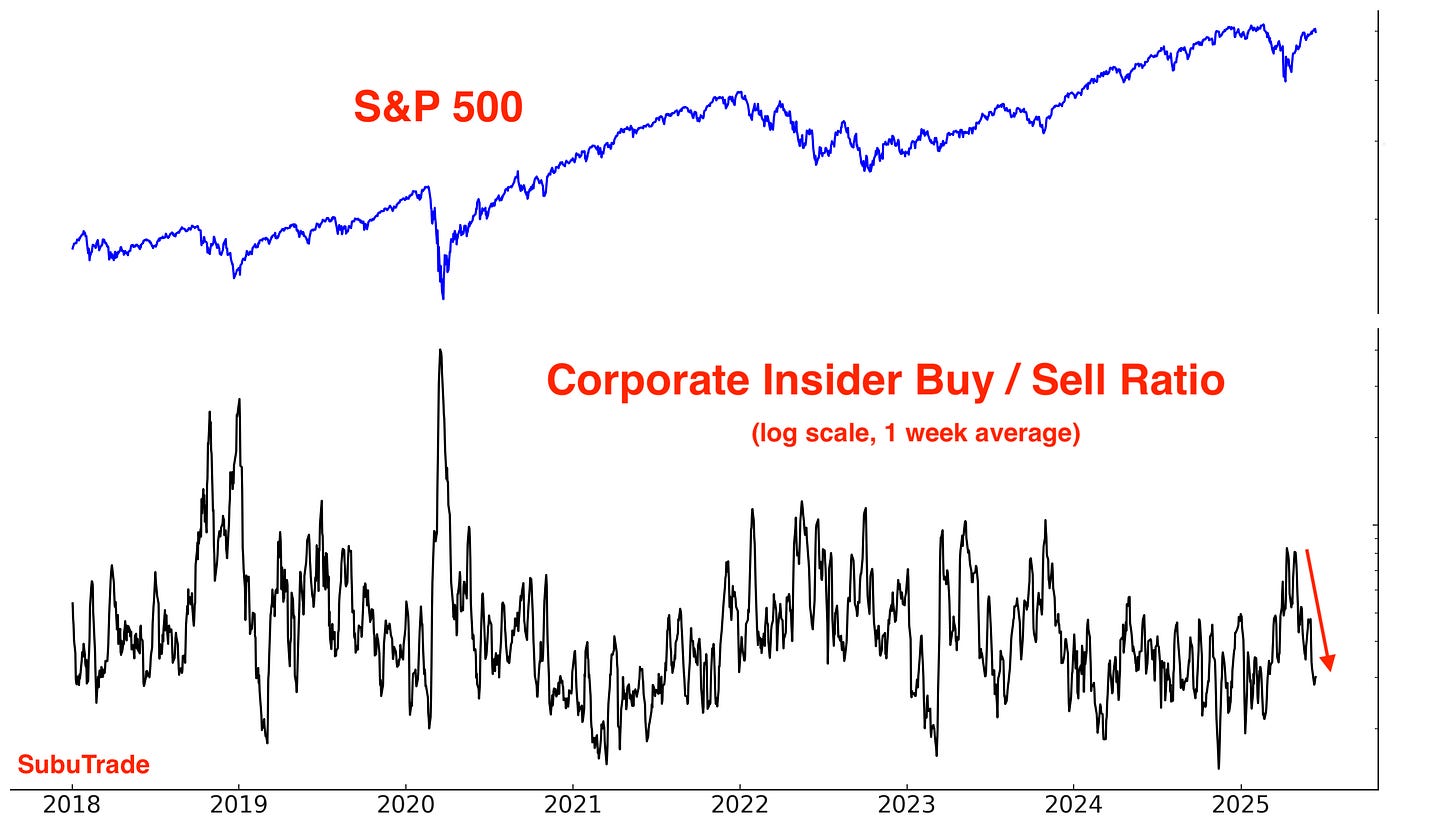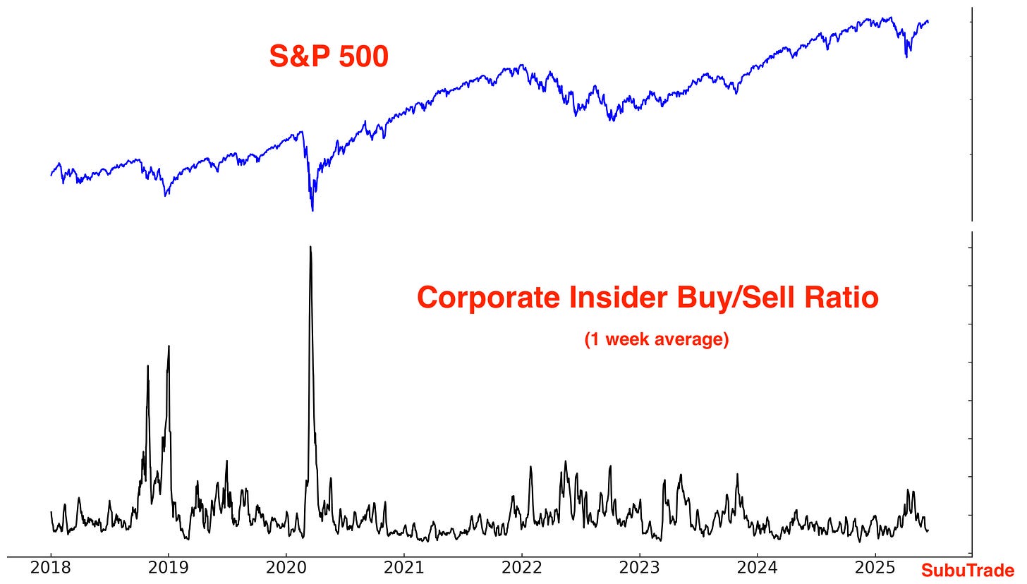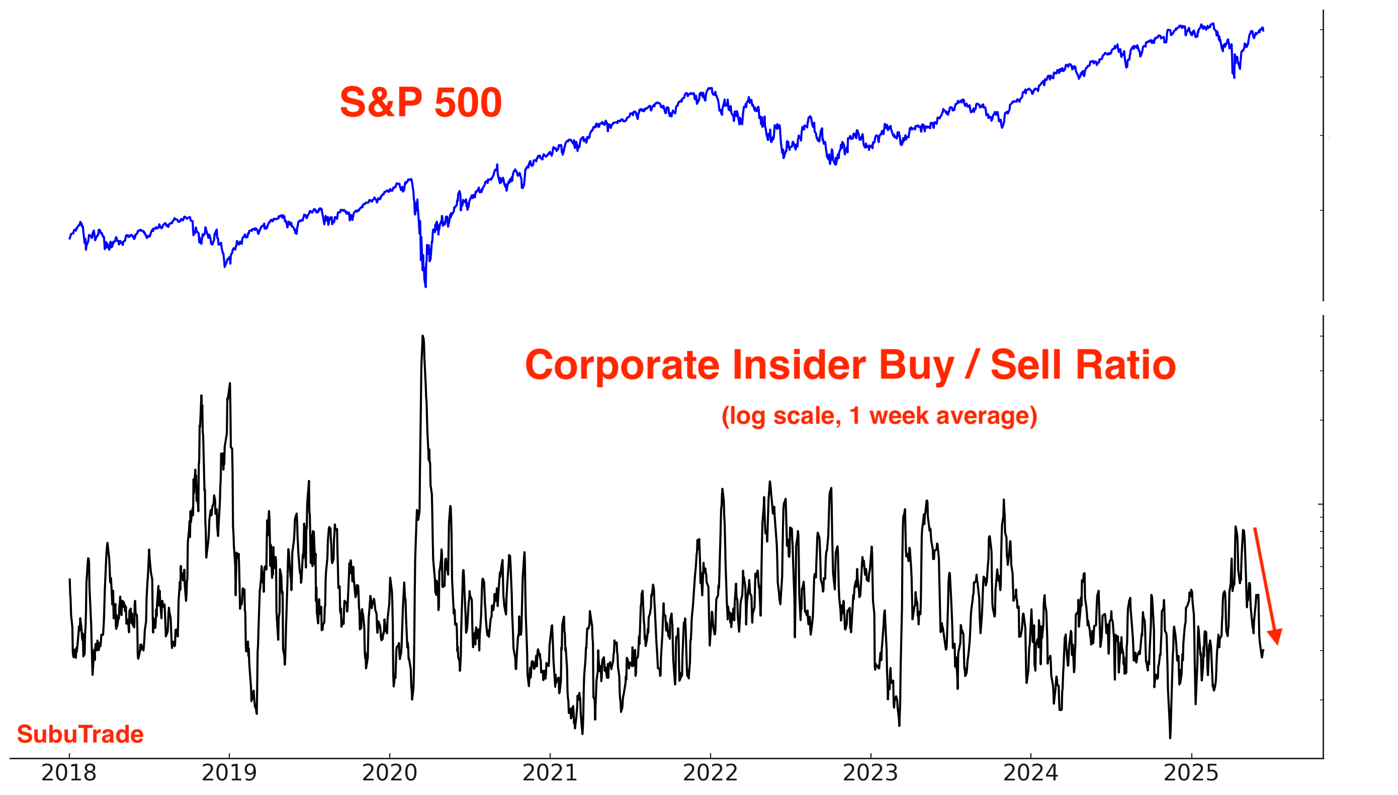 Same chart, but using a log scale for the Insider Buy/Sell Ratio:
