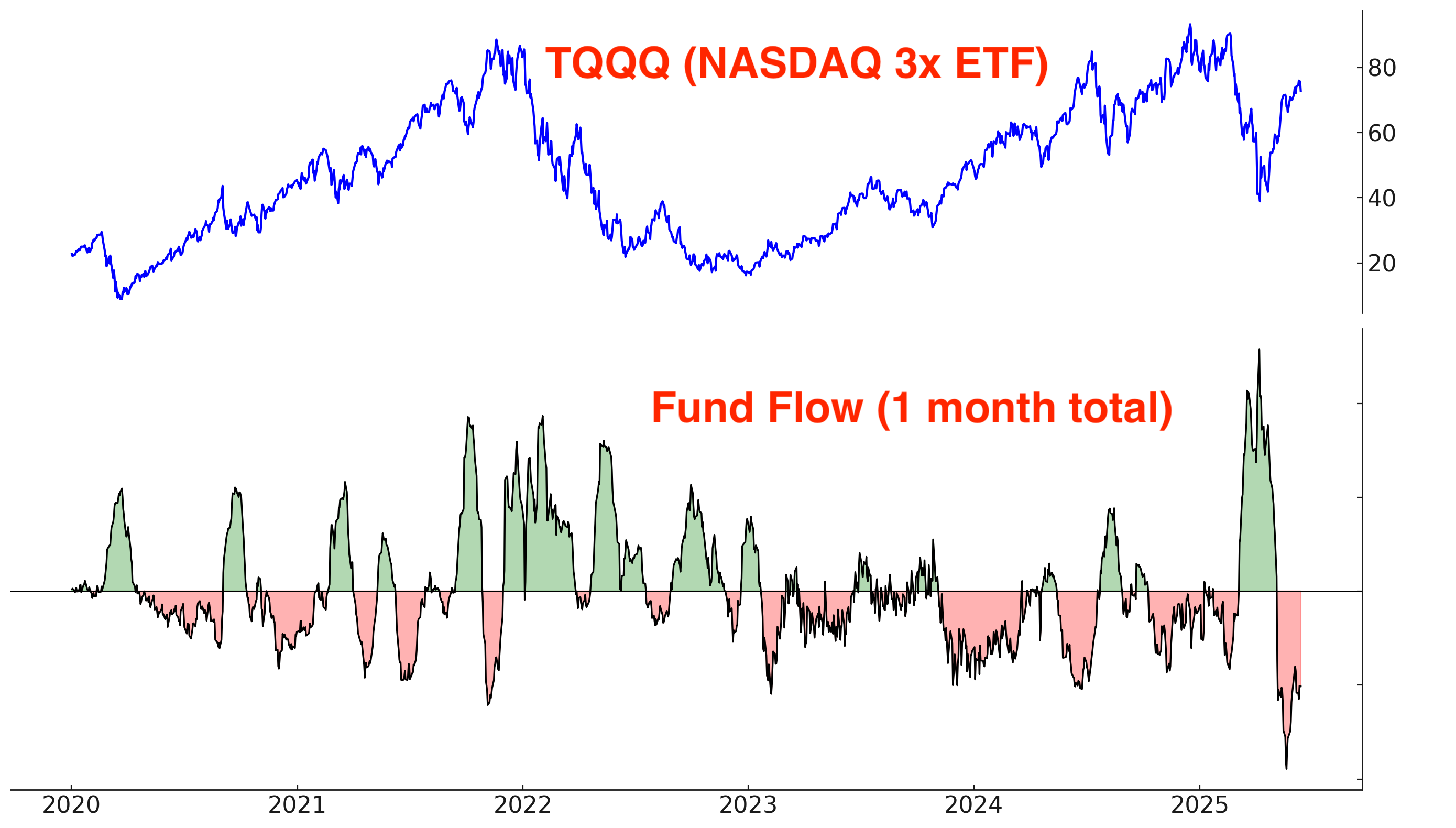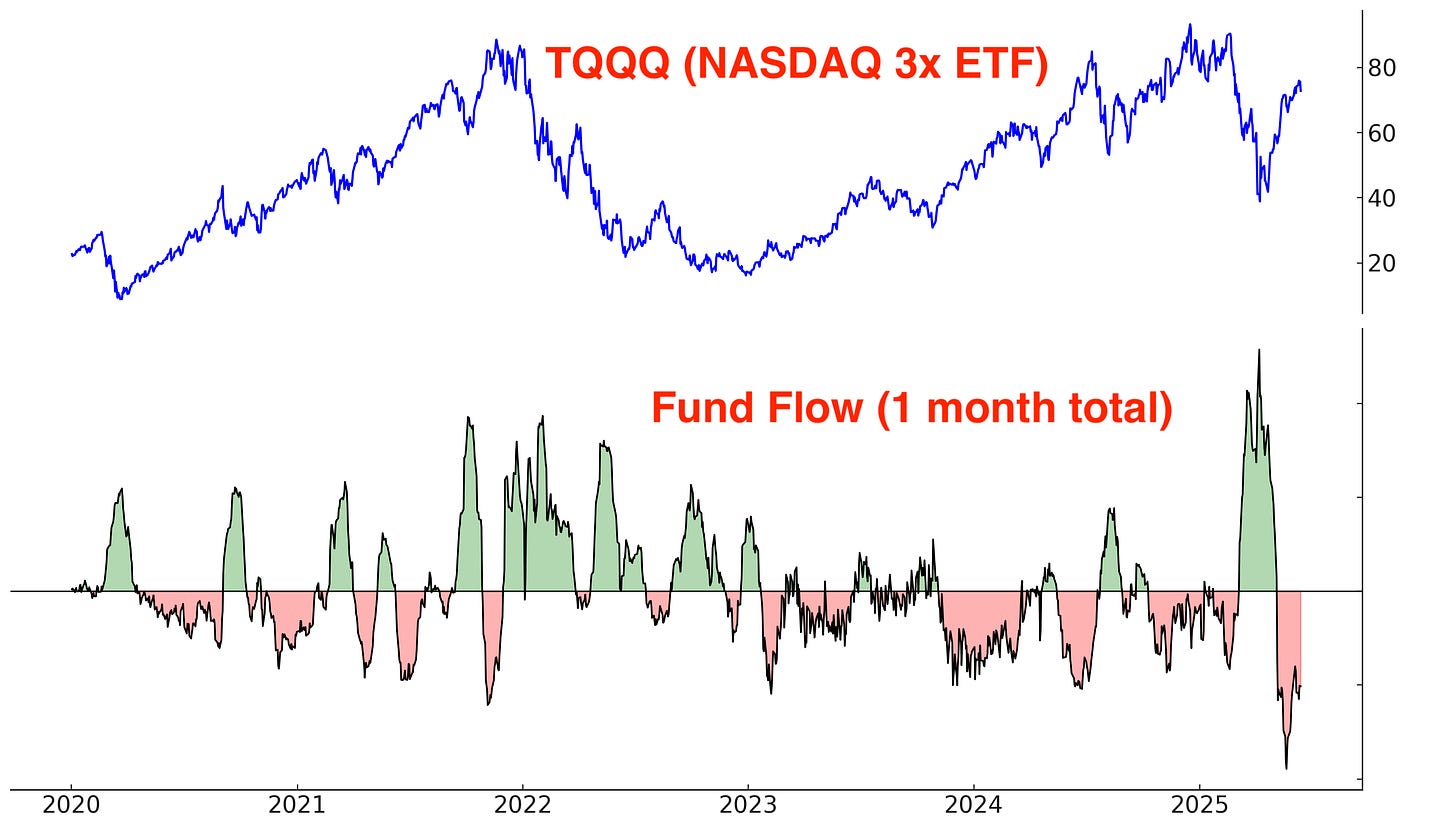 TQQQ is still seeing outflows, which suggests that these mean-reversion traders are still taking profits: