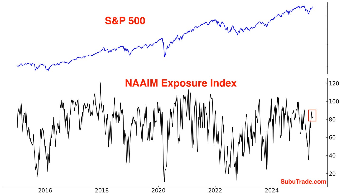 According to the NAAIM Exposure Index, asset managers lean bullish: