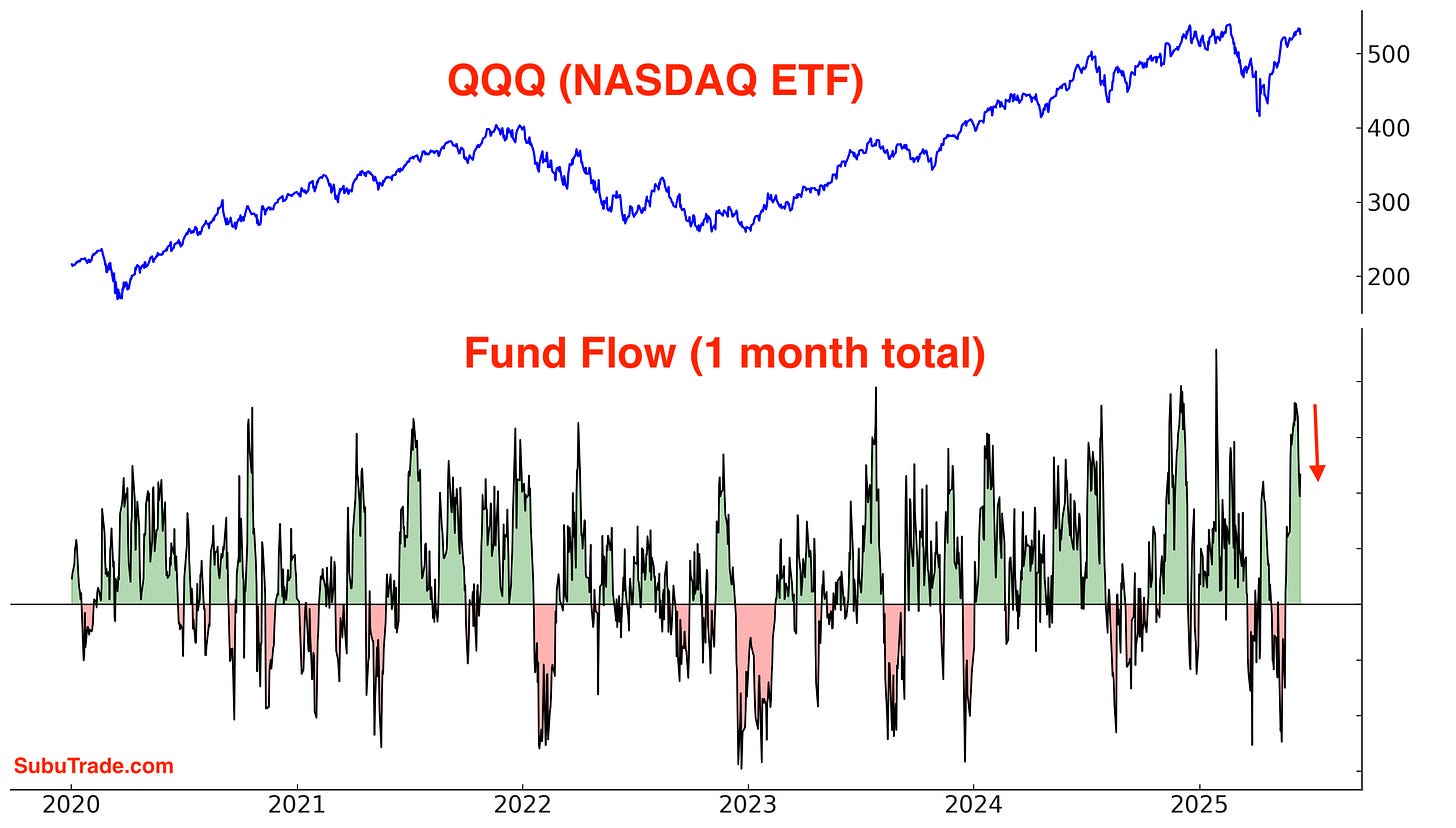 Inflows into QQQ (NASDAQ ETF) are slowing down: