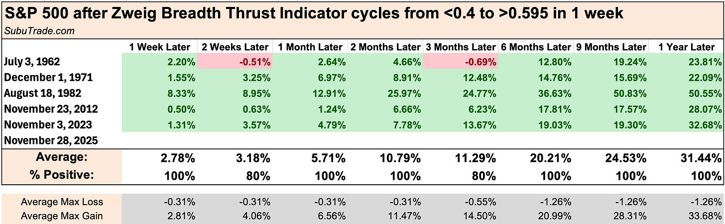 Even “almost” triggering a Zweig Breadth Thrust is a bullish sign for stocks: