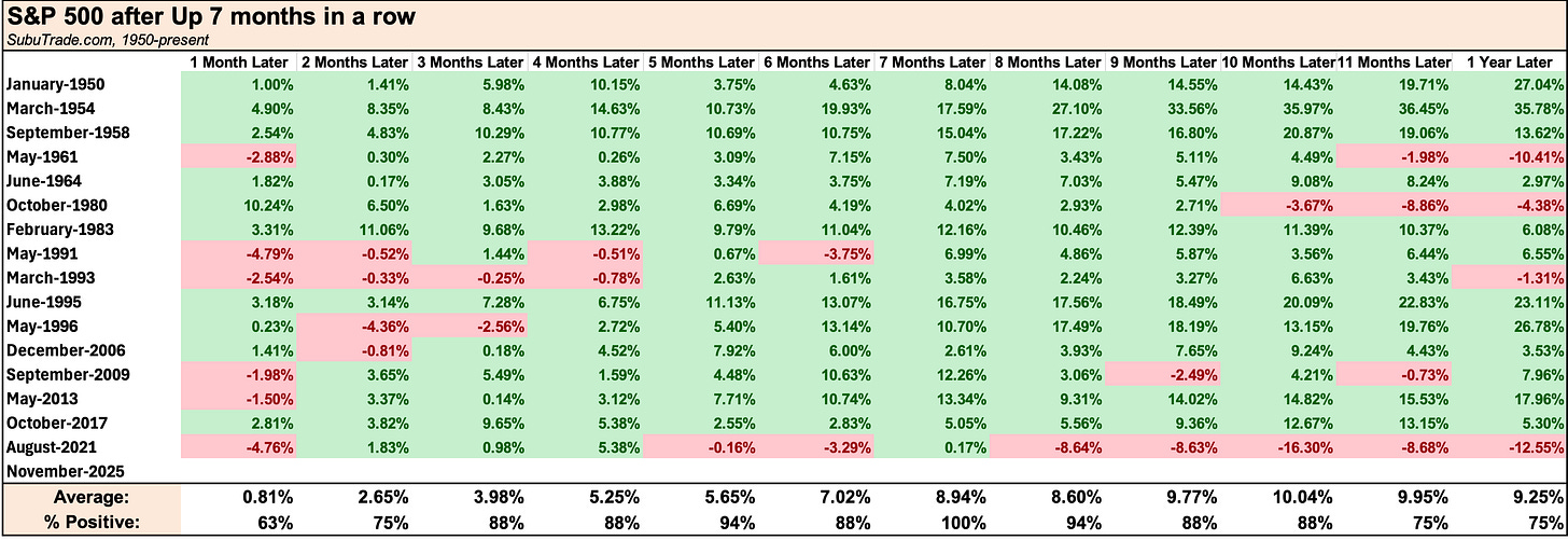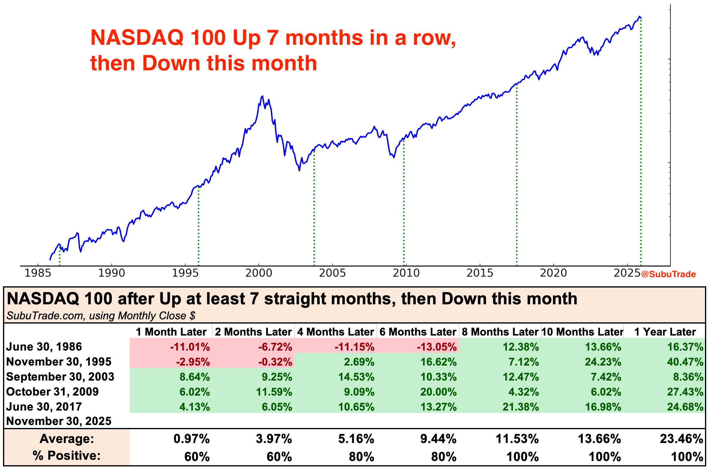After a standard -5.1% pullback in November, the S&P 500 finished the month barely positive. It is now up 7 months in a row, while the NASDAQ 100 snapped a 7 month winning streak.