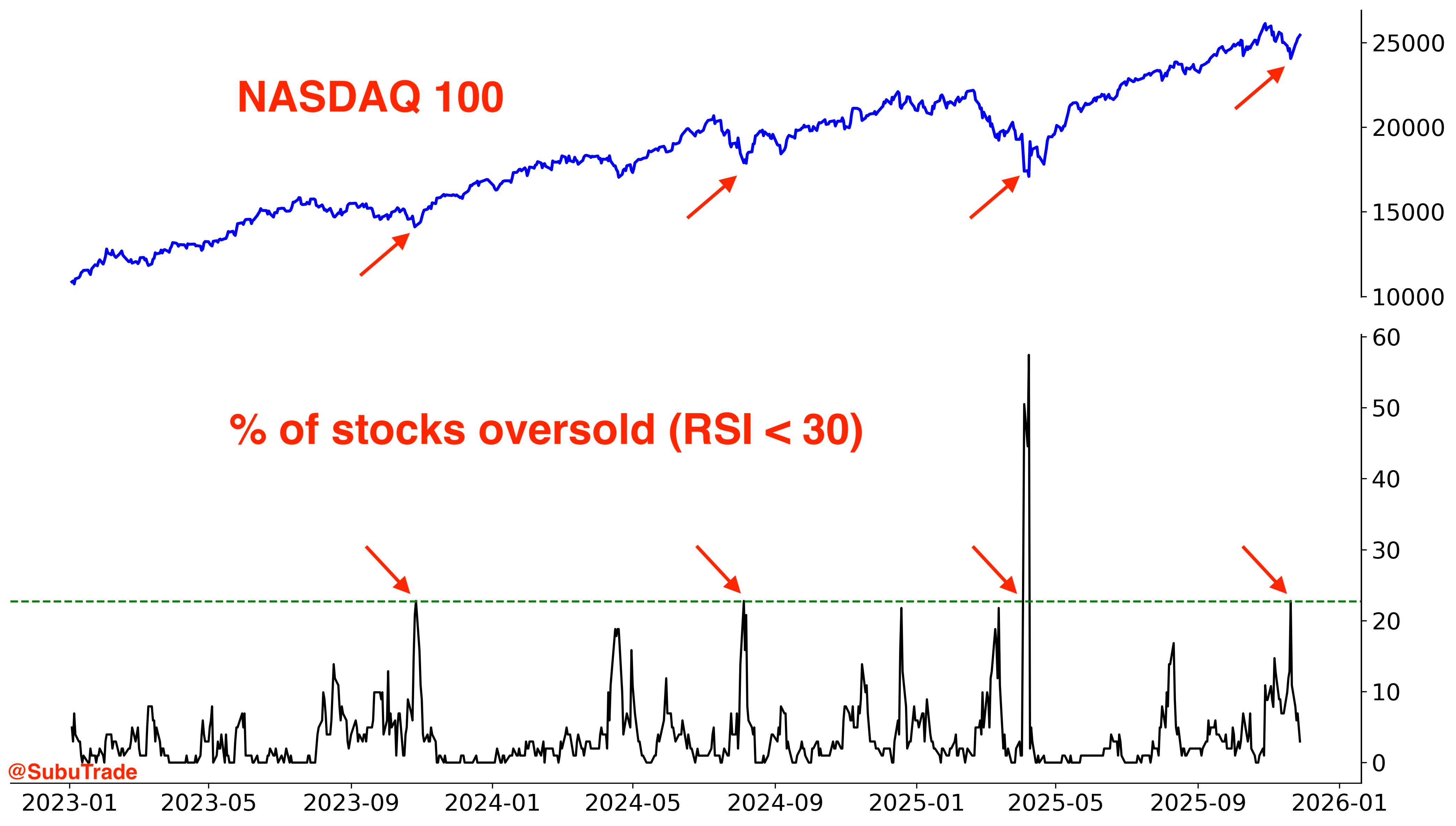 The % of NASDAQ 100 stocks that were oversold: