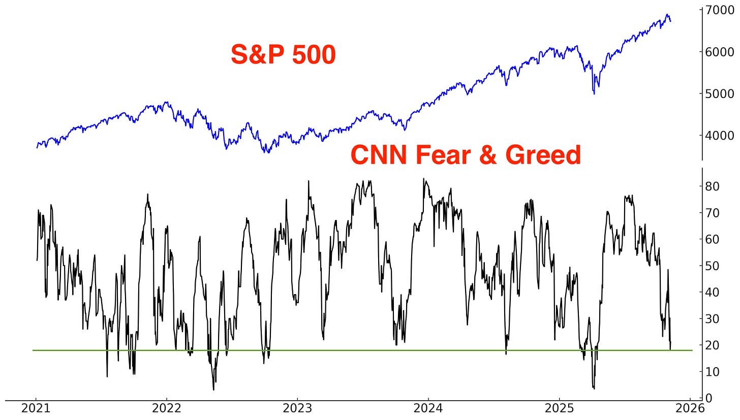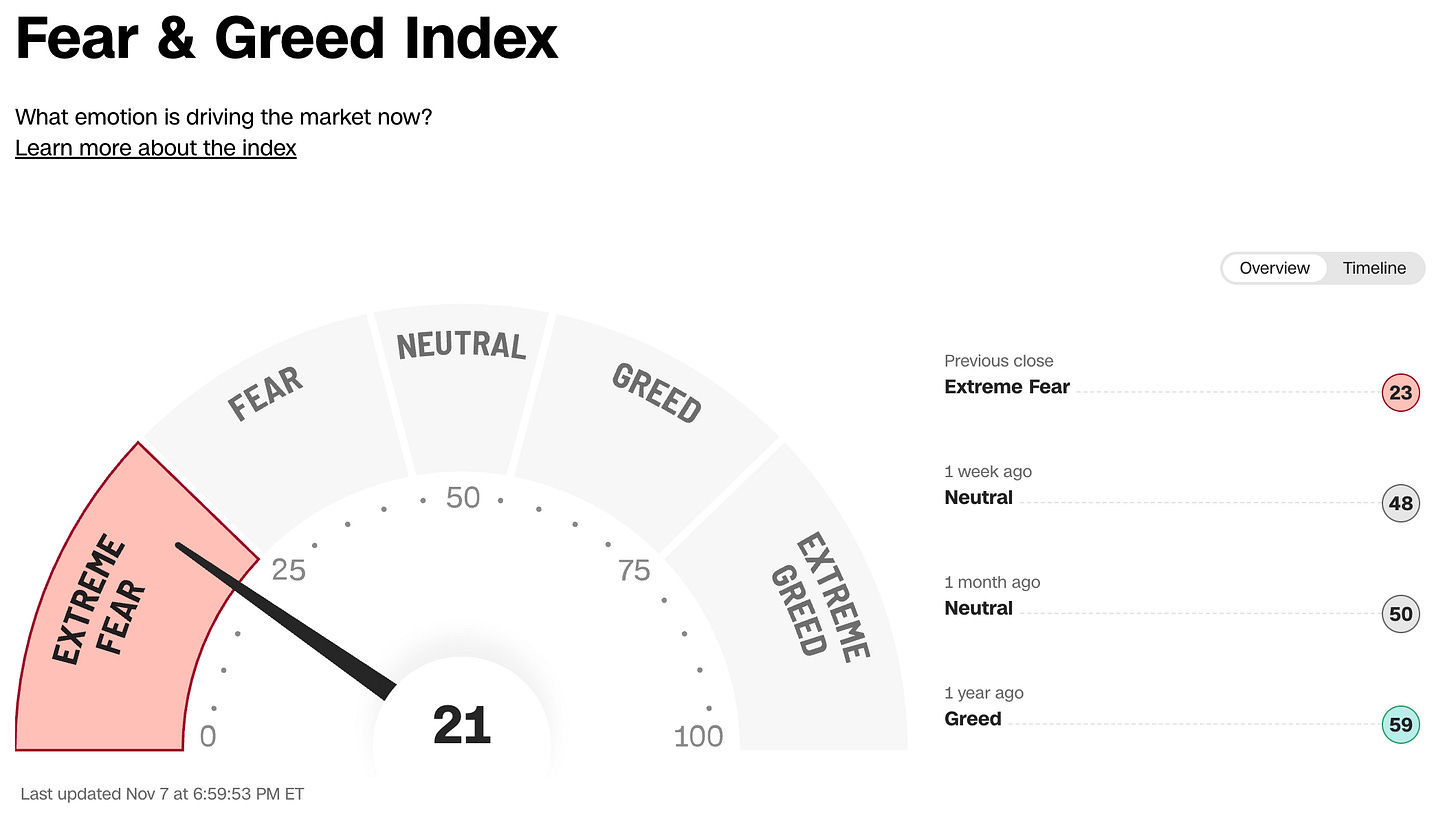The CNN Fear & Greed Index is in “extreme fear” territory. This indicator is widely circulated on Twitter/X:
