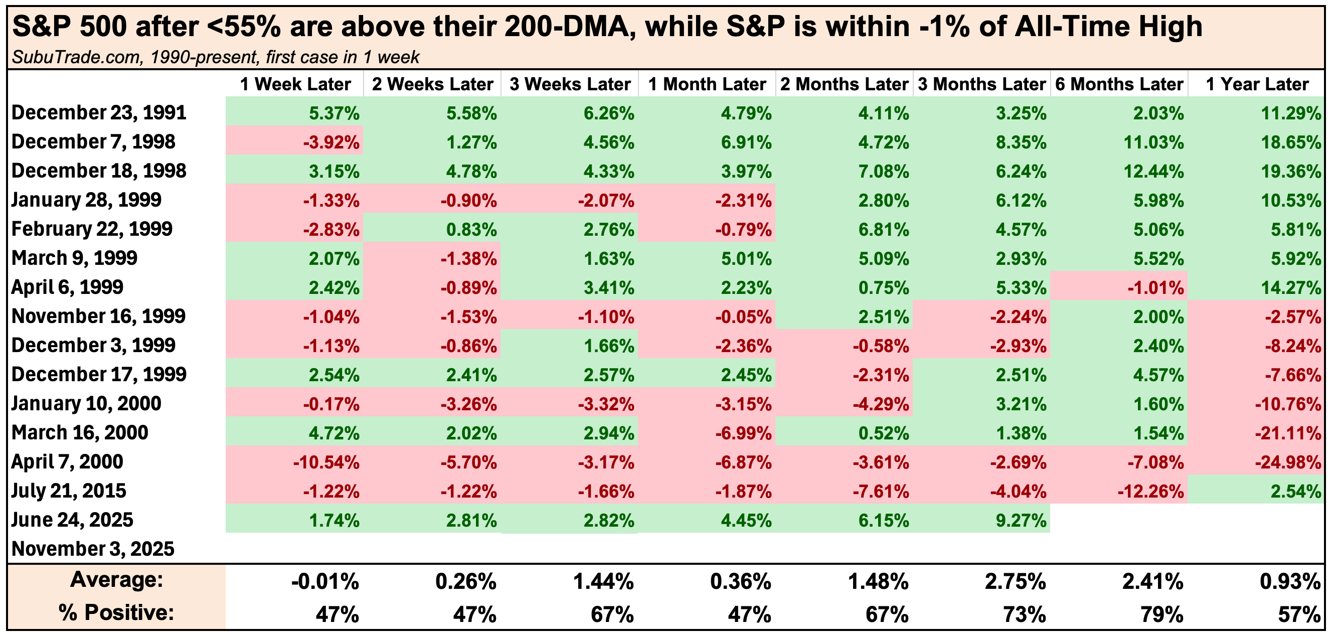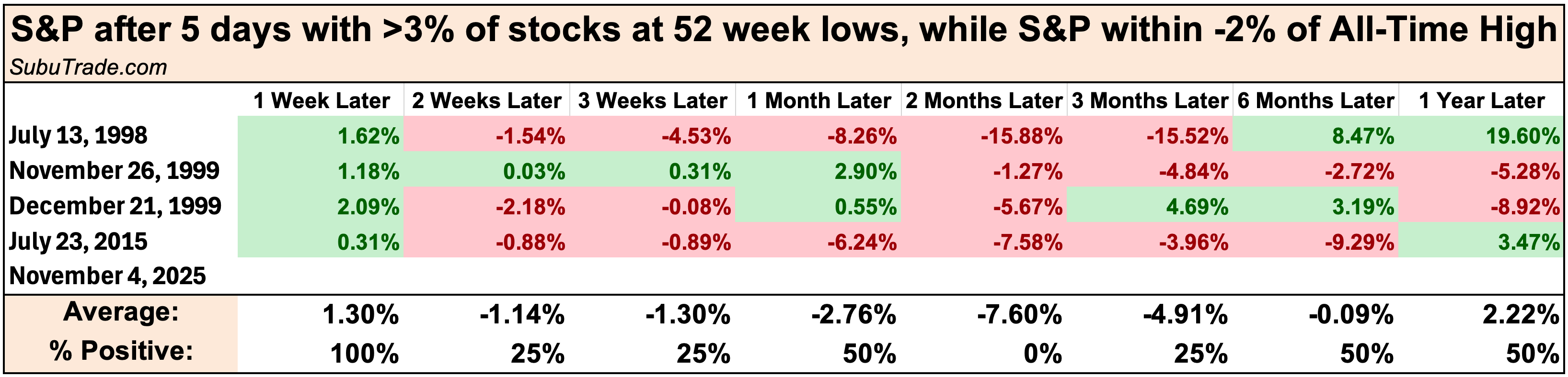 This is not common when the index is so close to all-time highs. This has only occurred before….