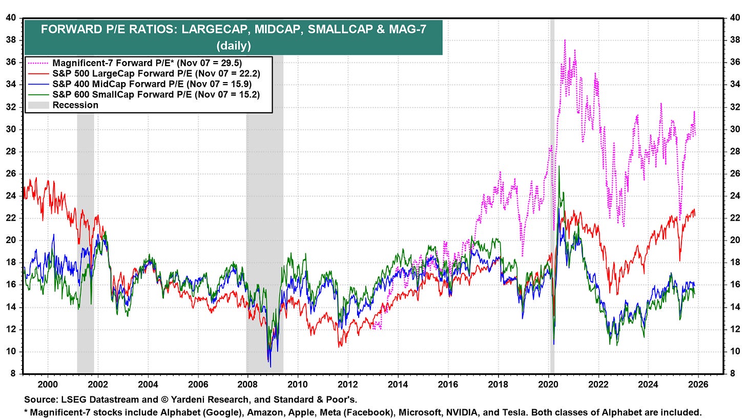 Valuations for large cap stocks (S&P 500) remain elevated compared to their 10 year average: