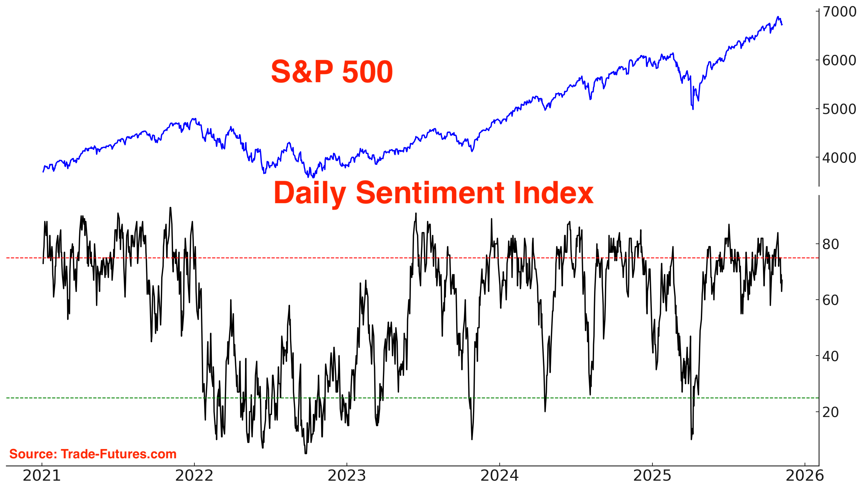 The S&P 500’s Daily Sentiment Index is still elevated:
