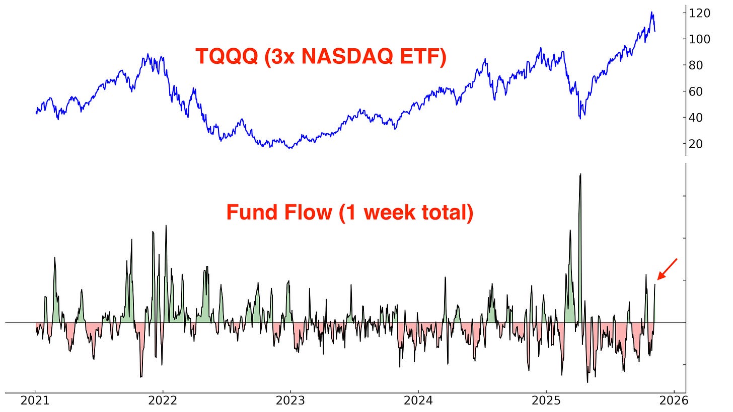 Due to the market’s recent bout of weakness, TQQQ traders are starting to buy the dip (inflows):
