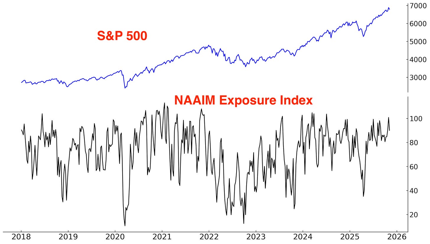 According to the NAAIM Exposure Index, active investment managers are bullish: