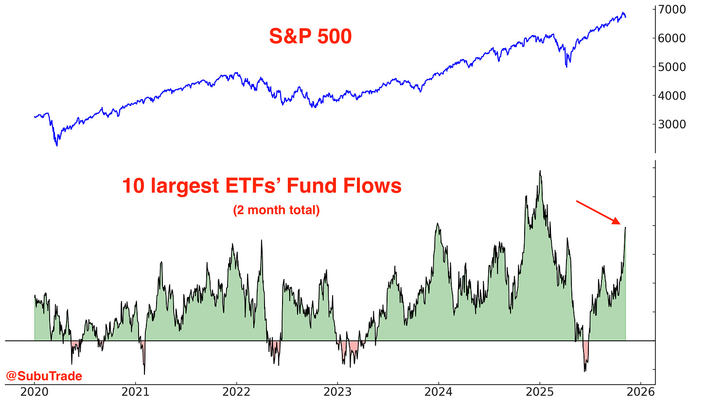 The past 2 months have seen a surge of inflows into the 10 largest equity ETFs: