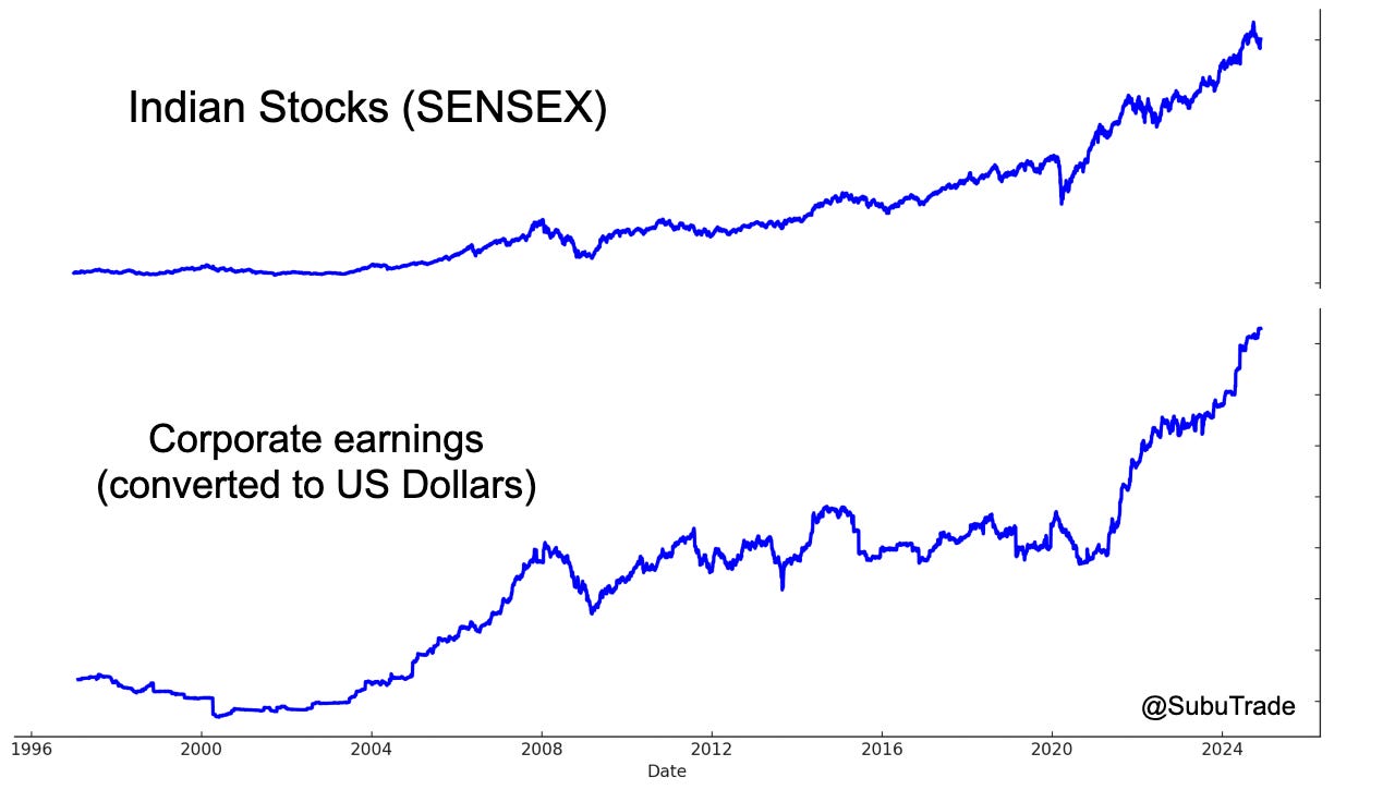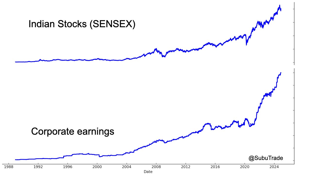In Part 2 I will explain the once-in-a-lifetime opportunity in Indian stocks (and India in general). First, here’s a chart of India’s corporate earnings (for the index SENSEX):