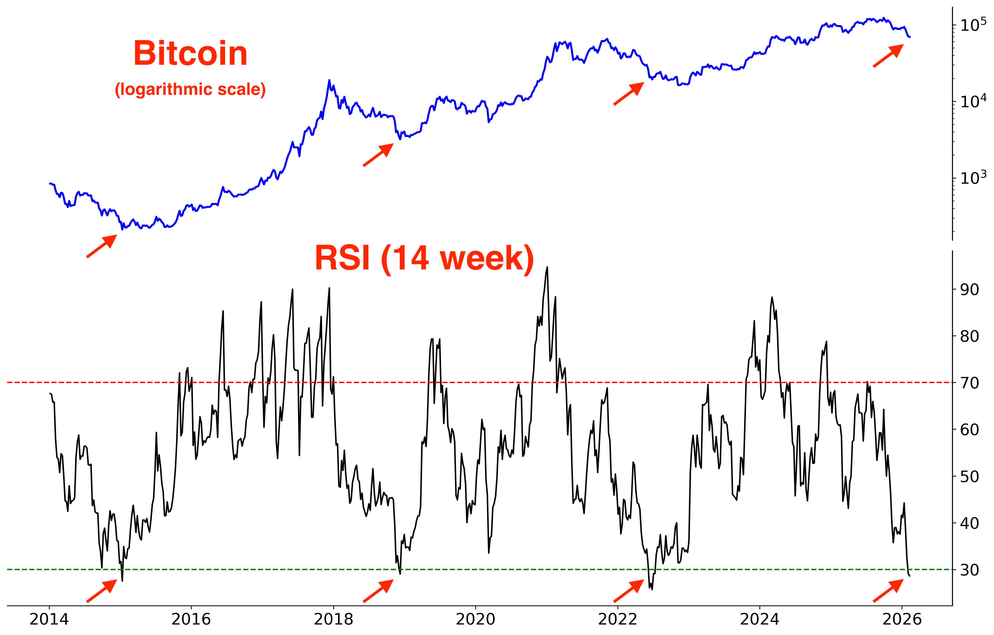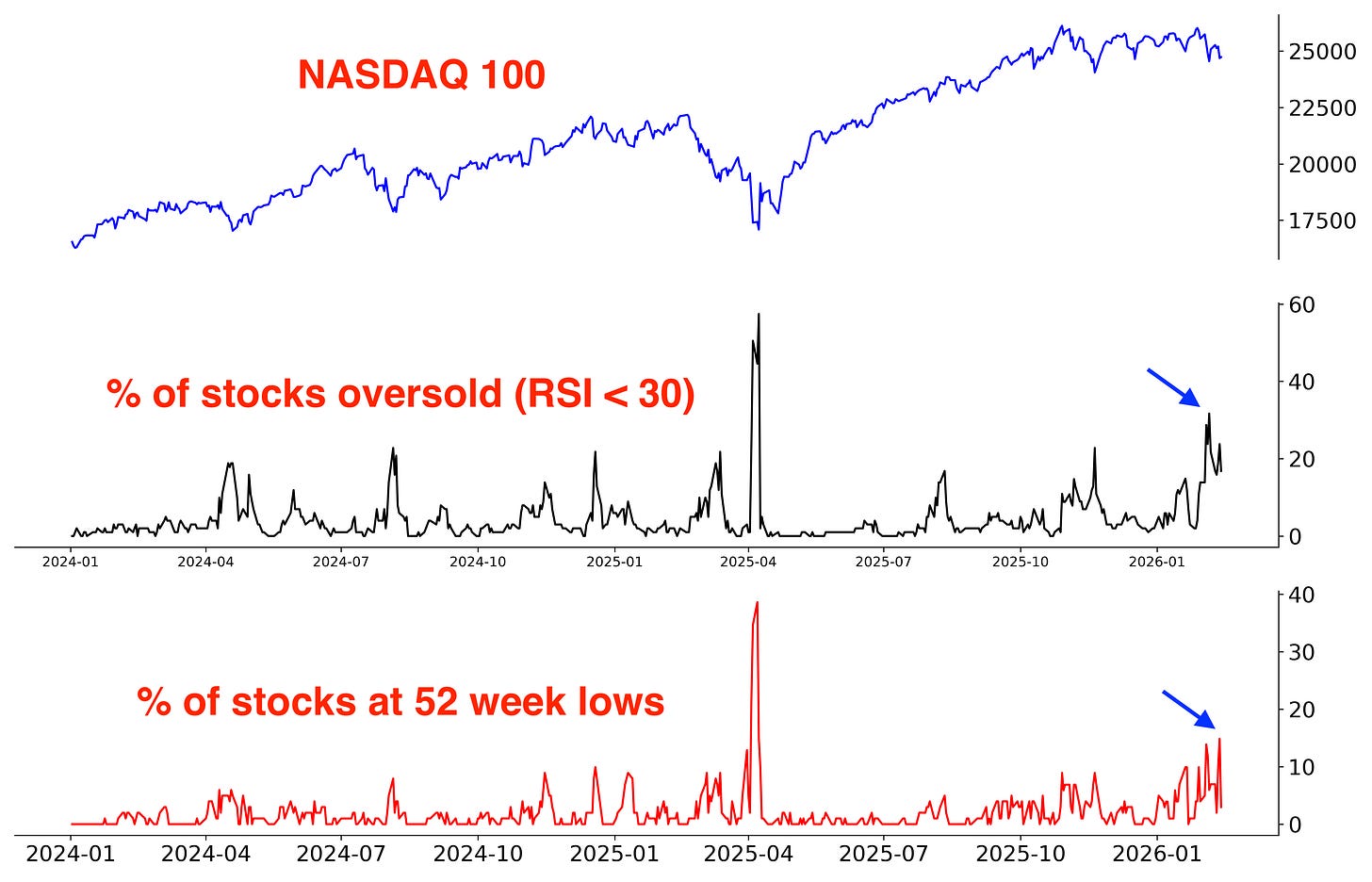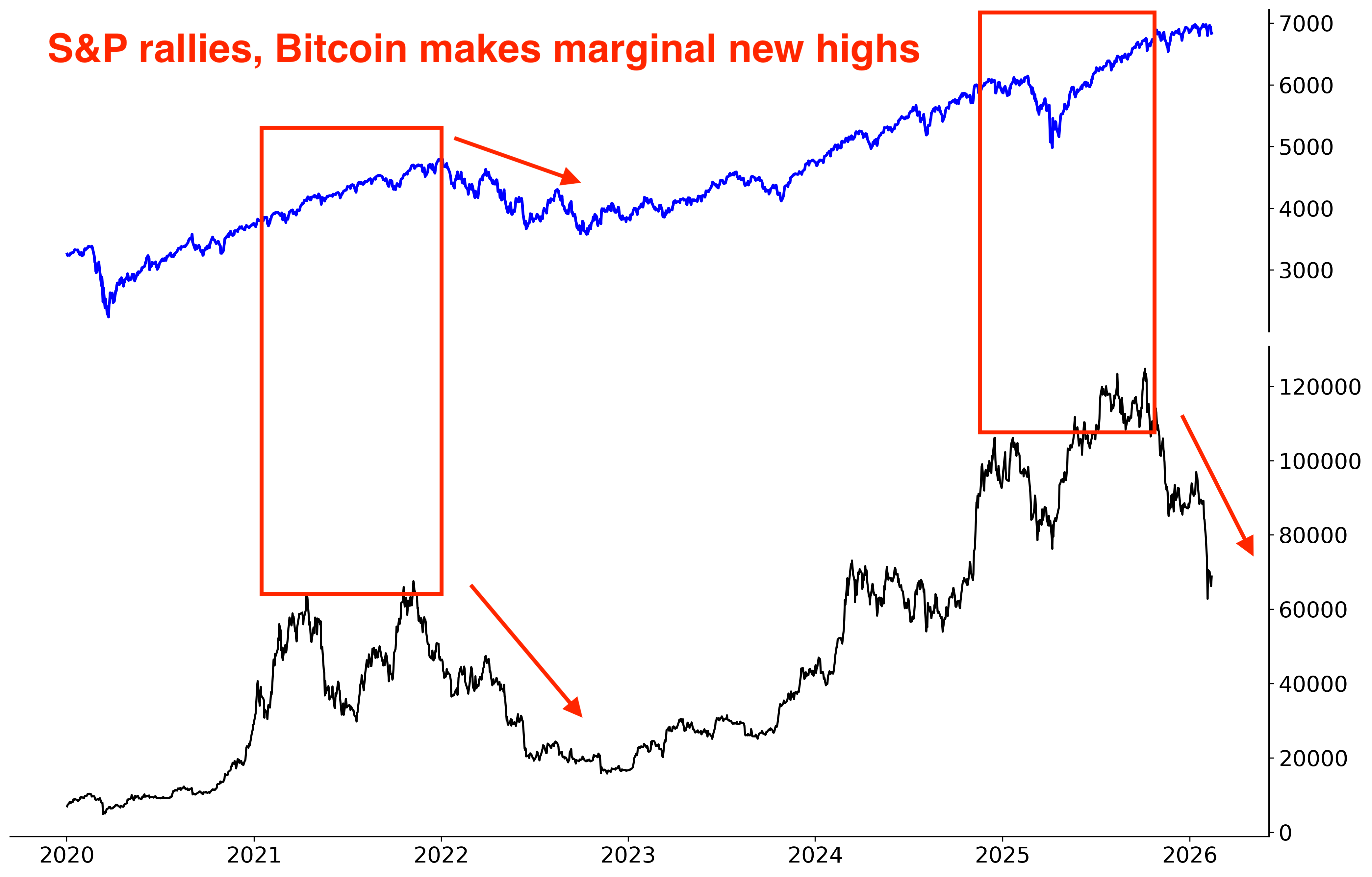 The silver lining here is that Bitcoin is now deeply oversold, which increases the probability of a strong bounce. If that happens, stocks could rally as well.