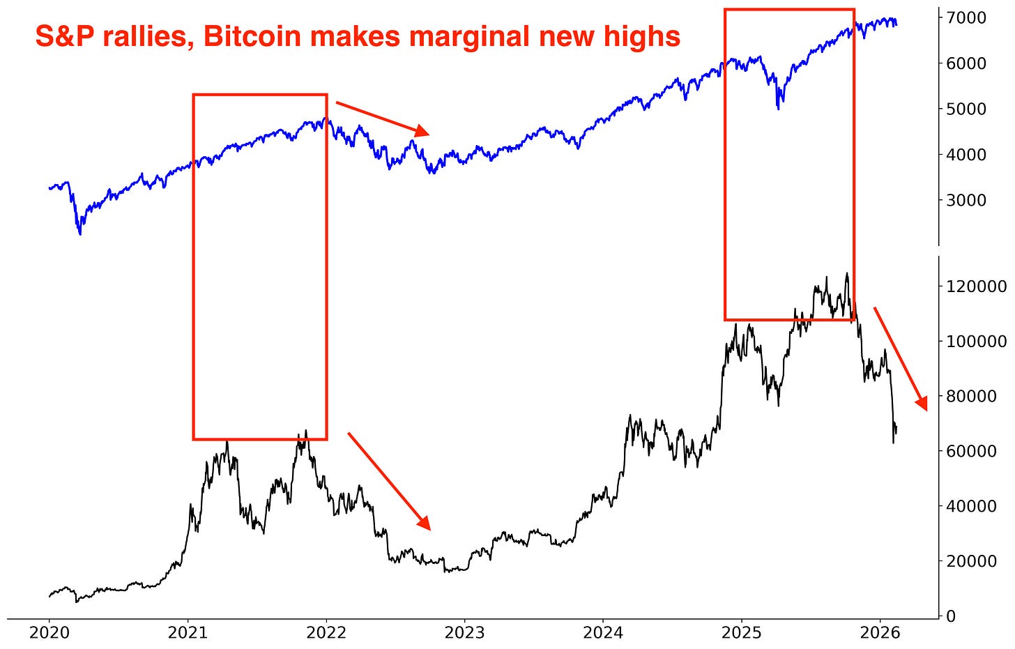 A concern I’ve had since Q3 2025 was Bitcoin’s inability to make new significant highs. This is how the 2022 bear market played out: